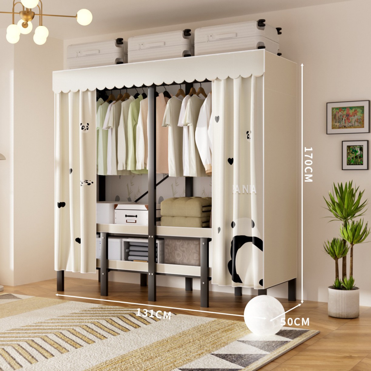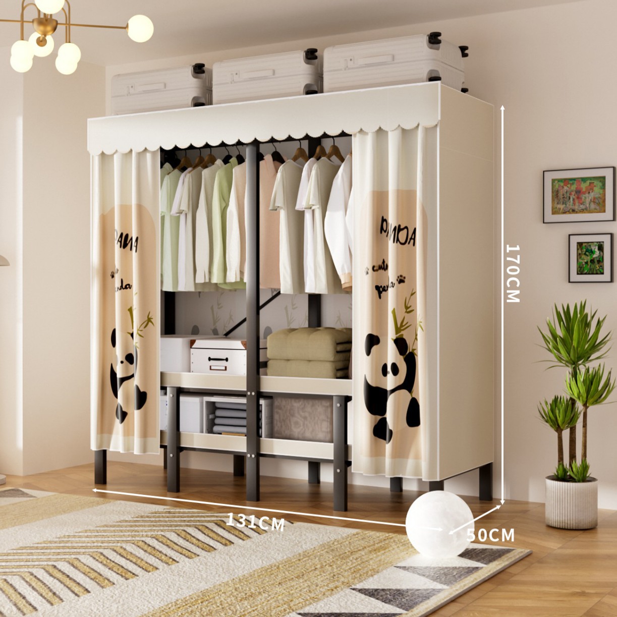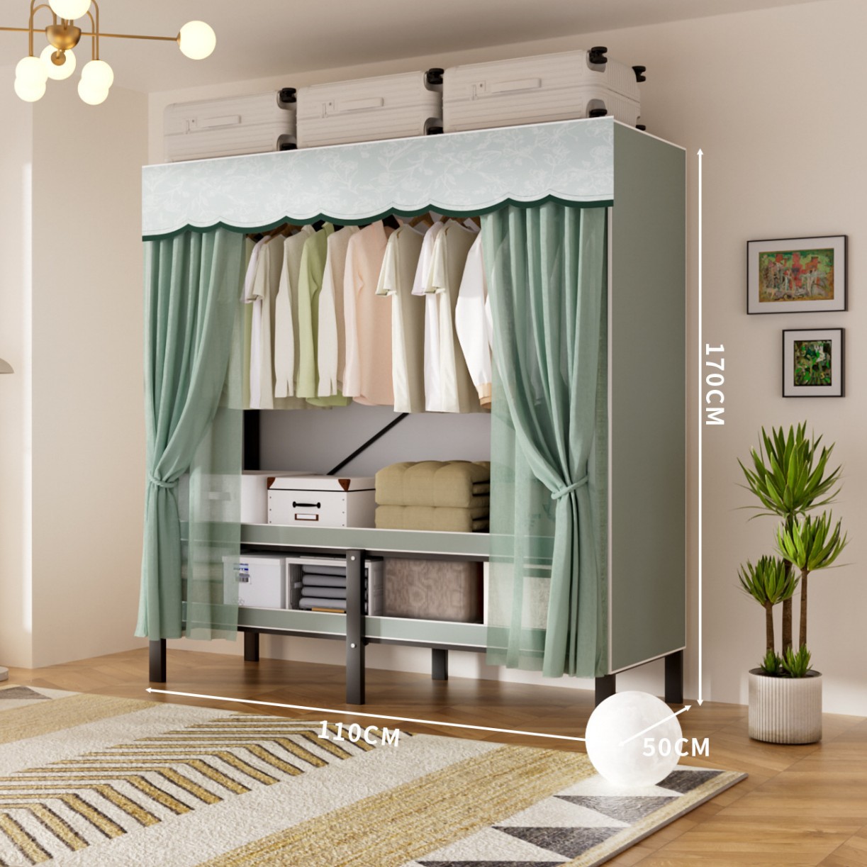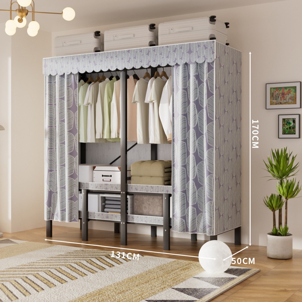 접이식 옷장, 가정용 침실, 간단한 천 옷장, 튼튼하고 내구성이 뛰어난 임대용 옷장, 철제 프레임 캐비닛스토어 가기