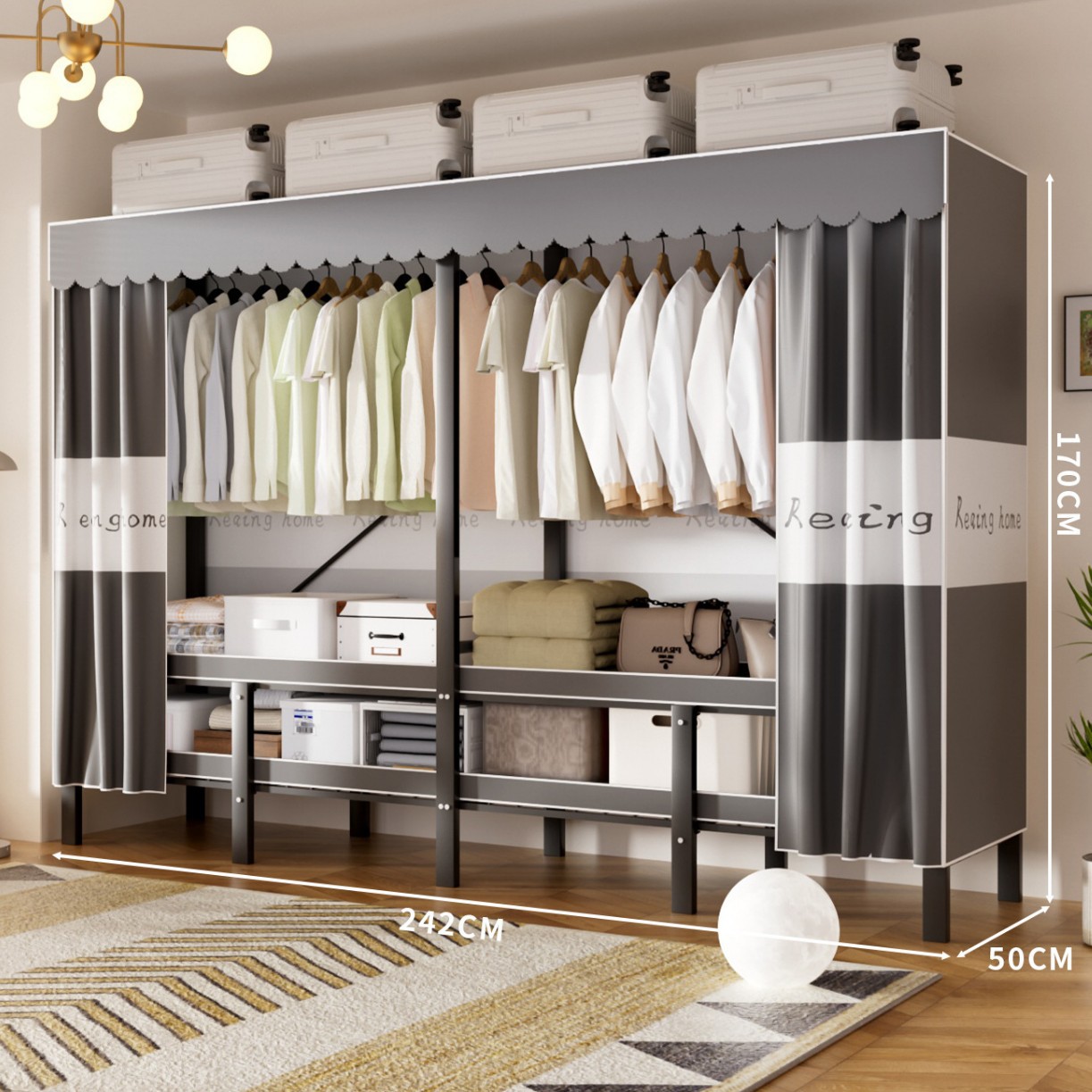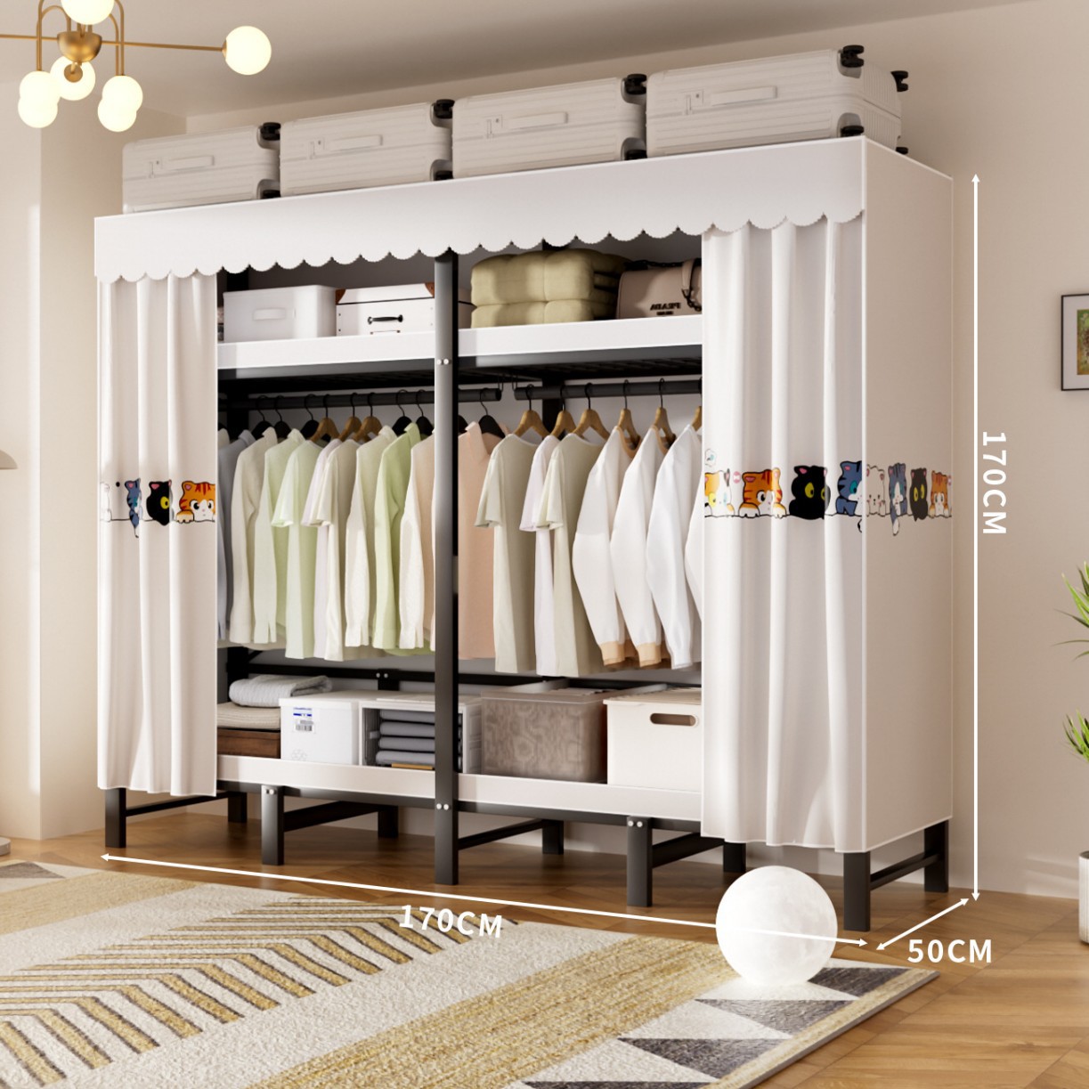 • 업그레이드된 길어진 옷걸이 [롱 1.7m Xingqi Meng] 다양한 수납공간
