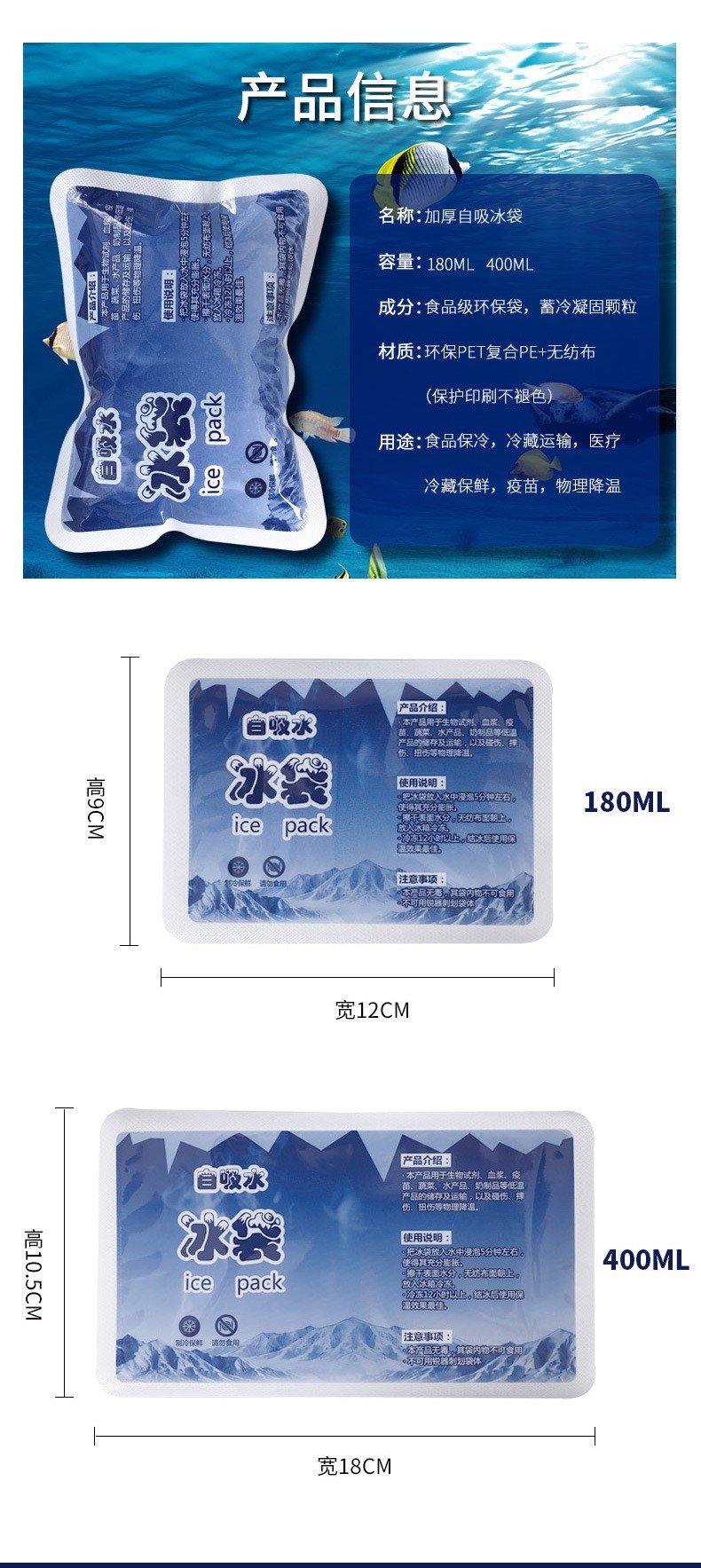 자체 흡입 얼음 가방 100ml400ml 식품 해산물 냉장 보존 냉찜질 얼음 가방 절연 가방 과일 운송 익스프레스