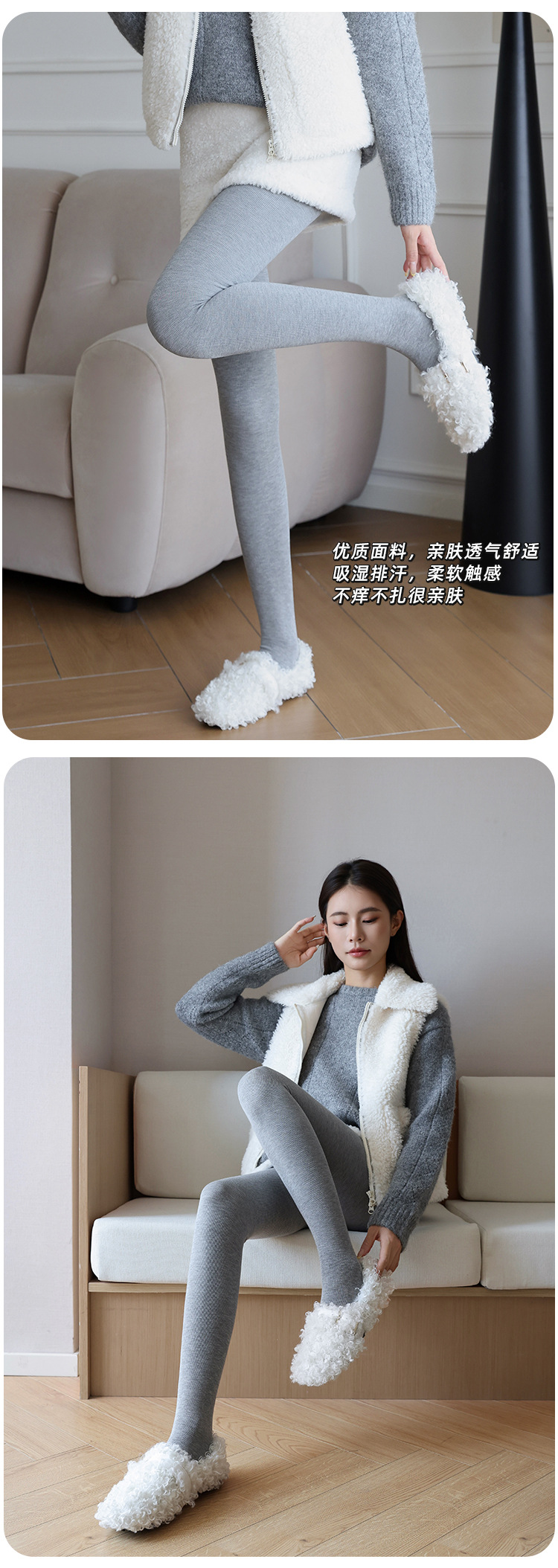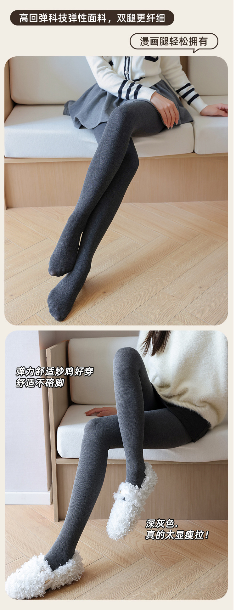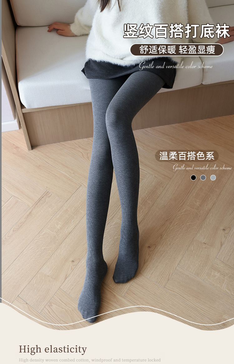 세로 줄무늬 봄, 가을, 겨울 벨벳 두꺼운 면 레깅스 여성용 일본식 스모크 그레이 따뜻하고 슬림한 스텝온 팬티 스타킹스토어 가기