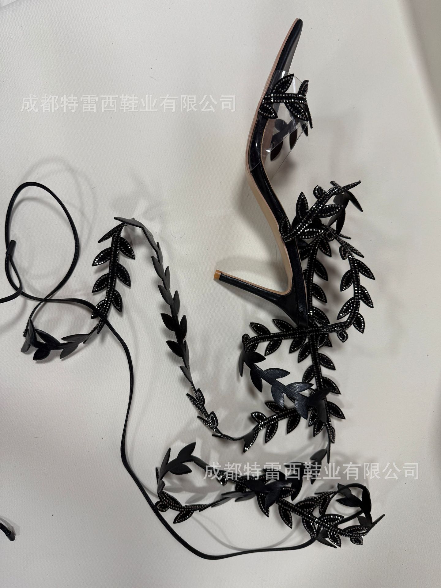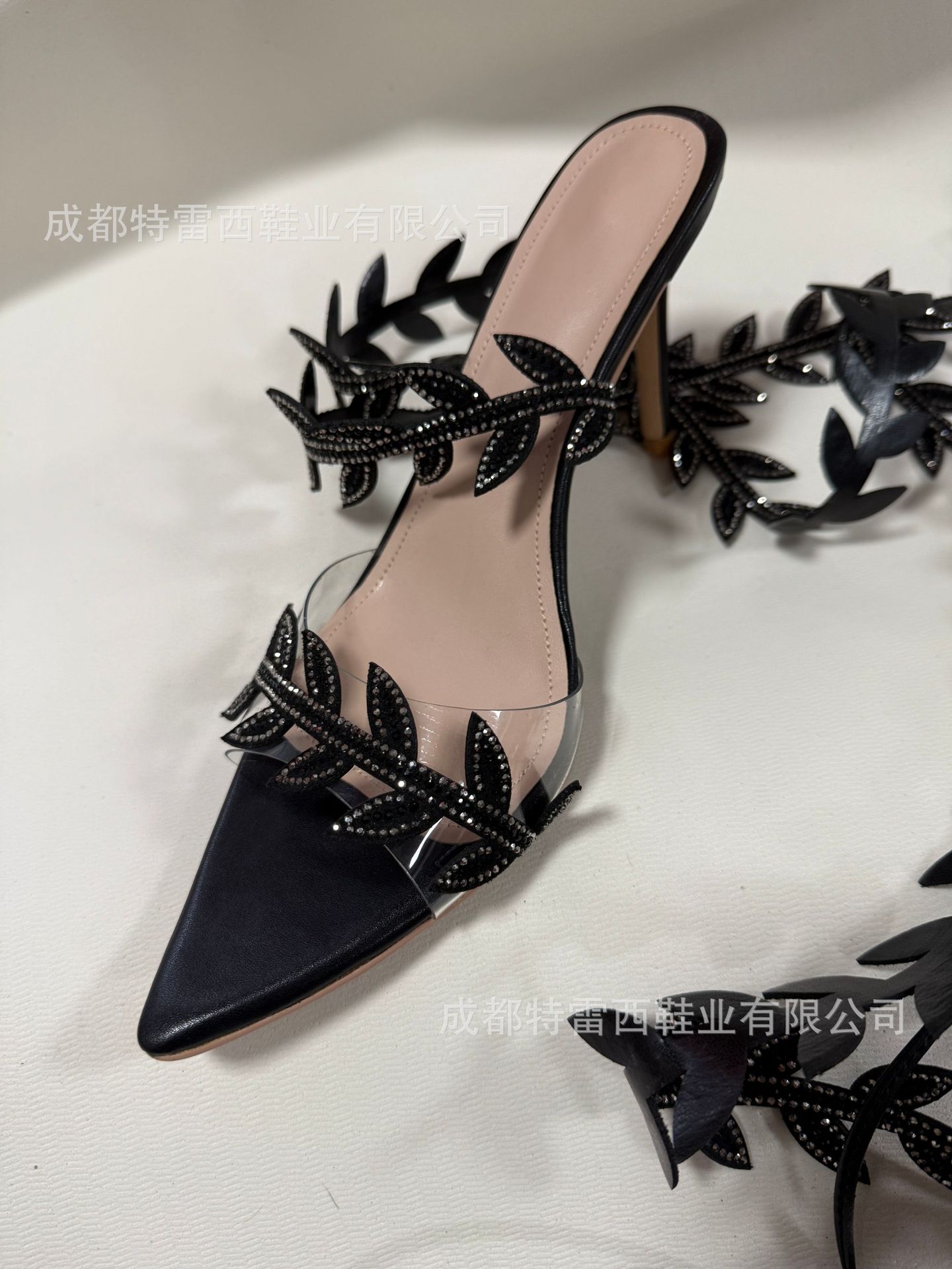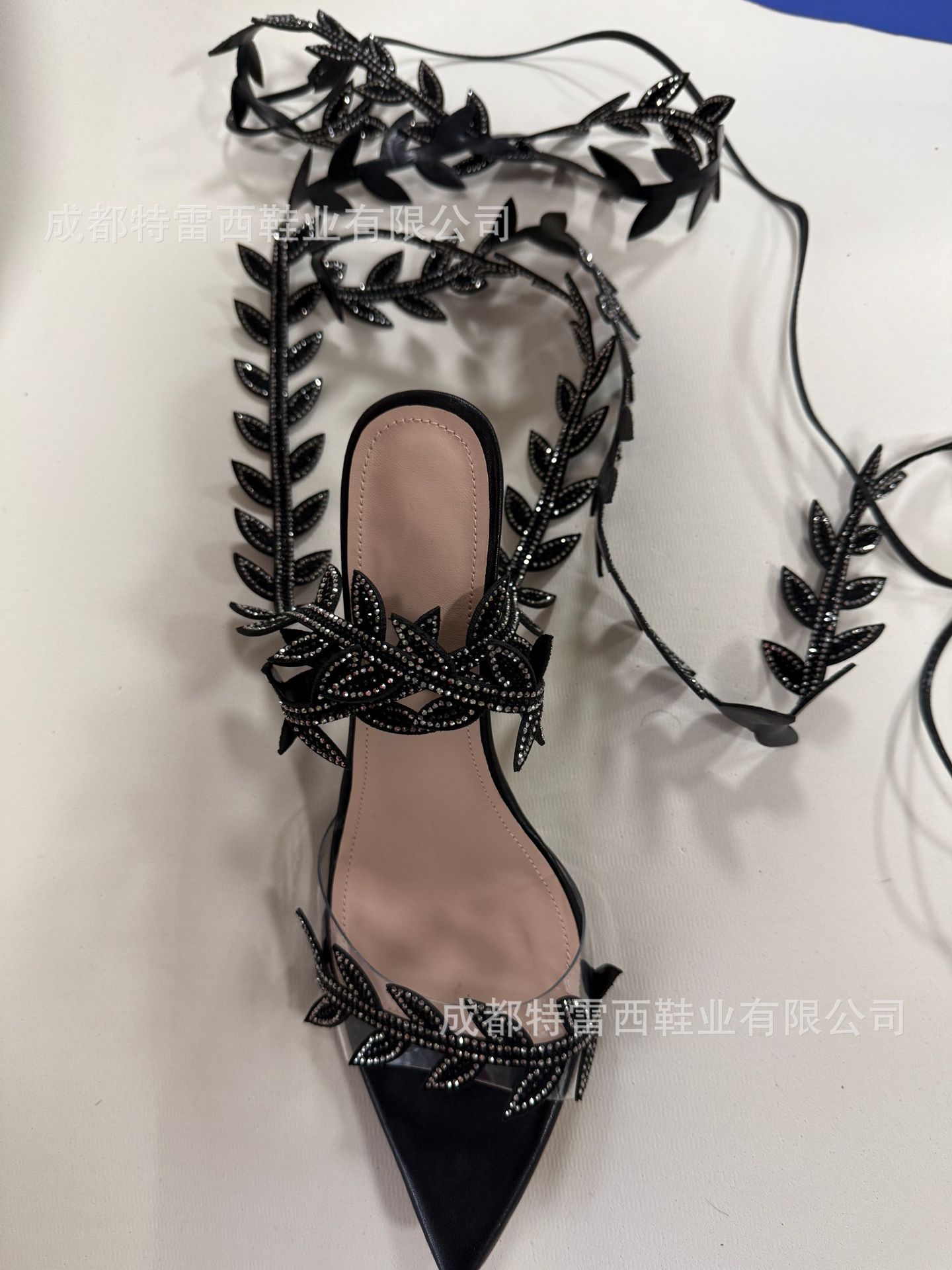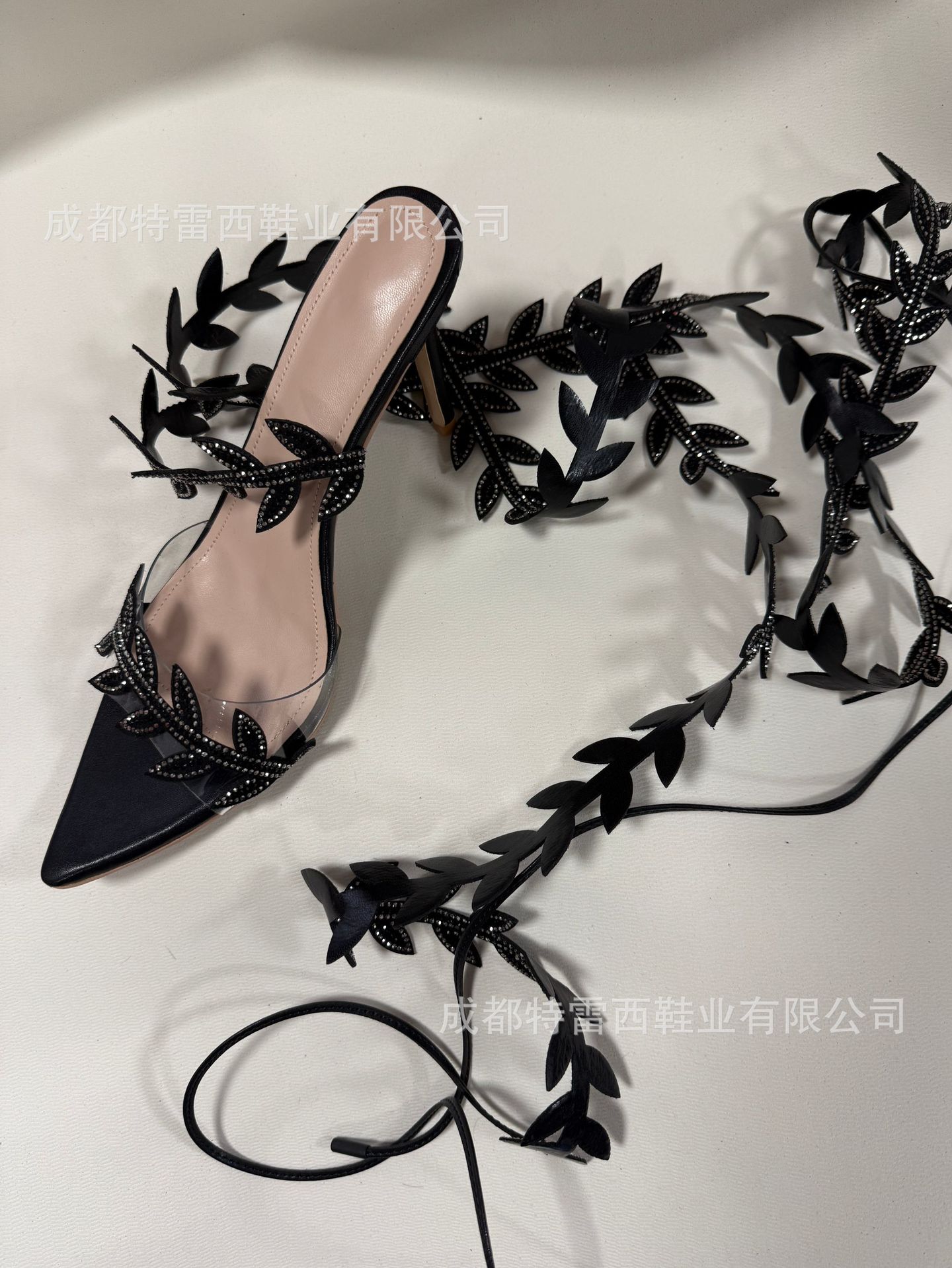 국경을 넘나드는 유럽과 미국의 여름 나뭇잎 핫 다이아몬드 롱 스트랩 하이힐 포인티드 토 스트랩 프렌치 샌들 오픈 토 여성화