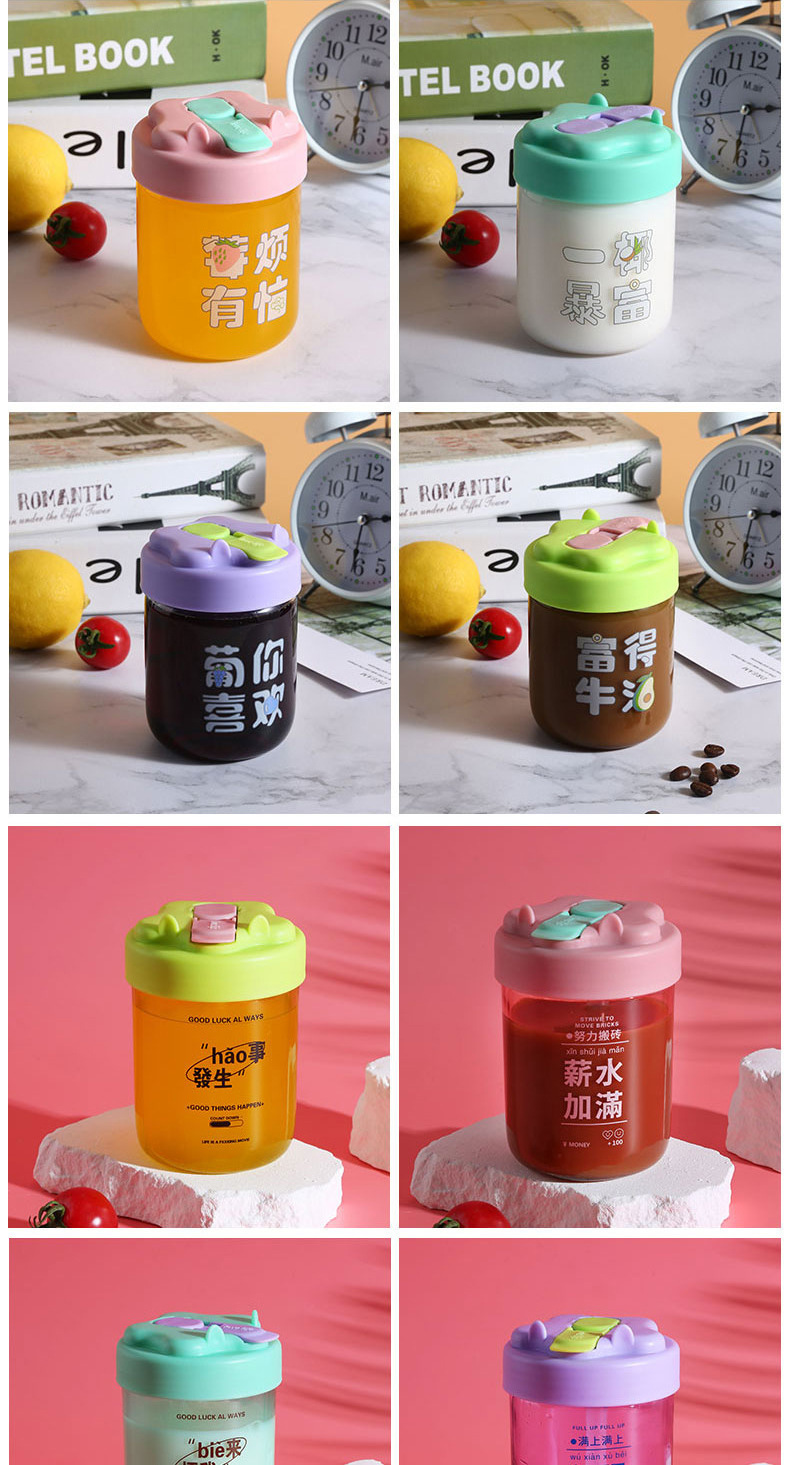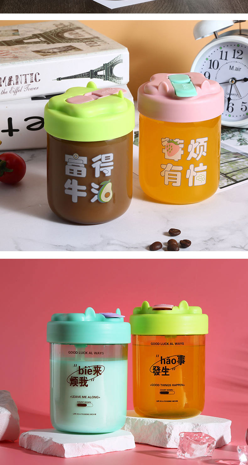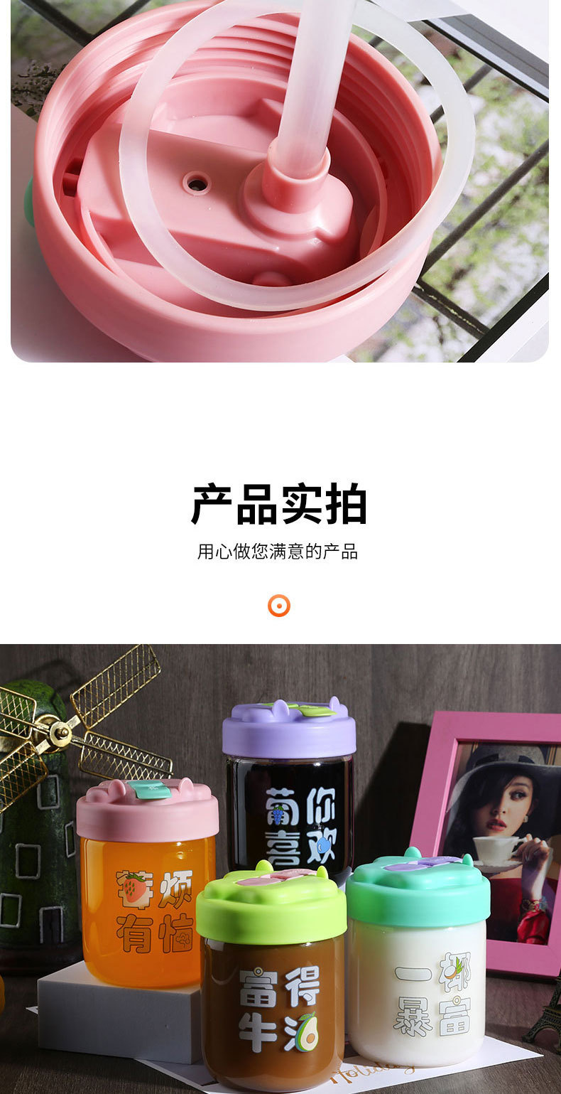 여학생과 어린이를 위한 맞춤형 이중 마시는 컵, 귀여운 유리 만화 새끼 고양이, 휴대폰 홀더, 빨대, 직접 마시는 컵스토어 가기