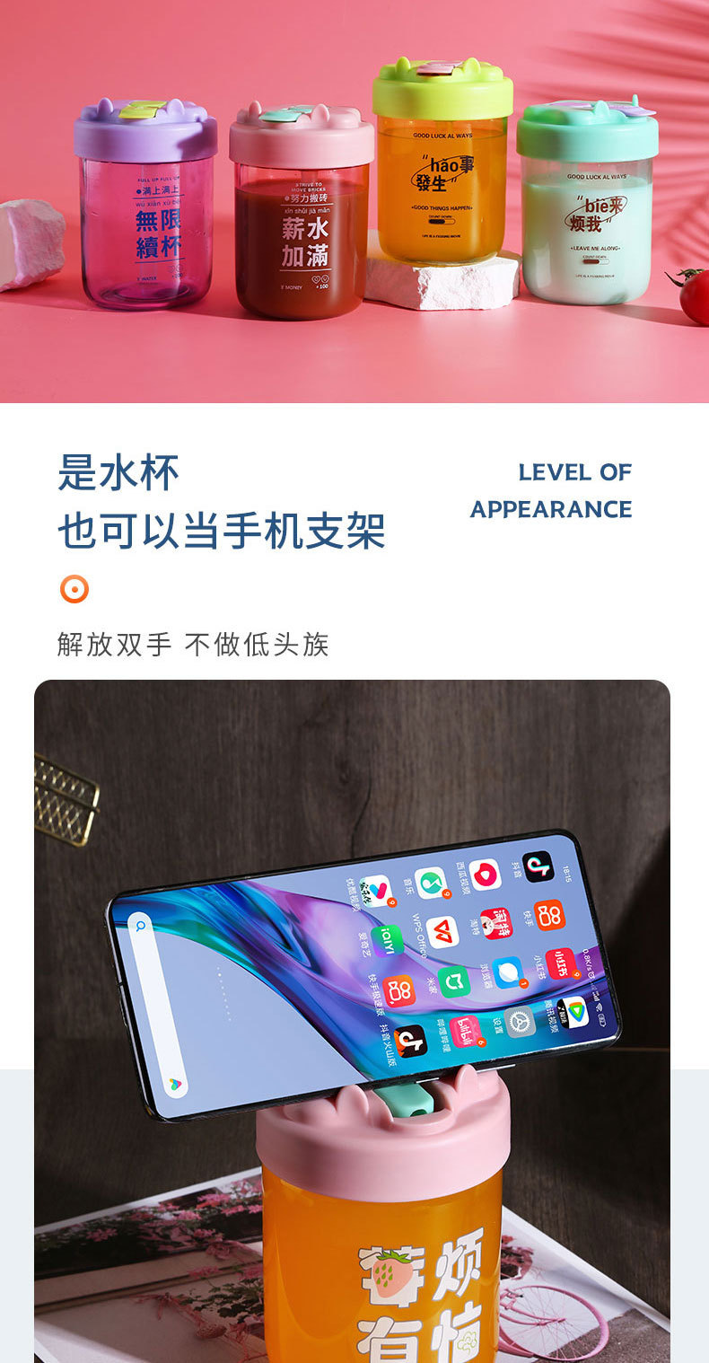 여학생과 어린이를 위한 맞춤형 이중 마시는 컵, 귀여운 유리 만화 새끼 고양이, 휴대폰 홀더, 빨대, 직접 마시는 컵