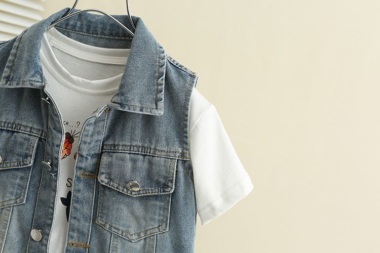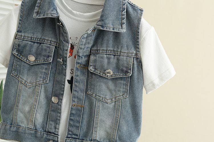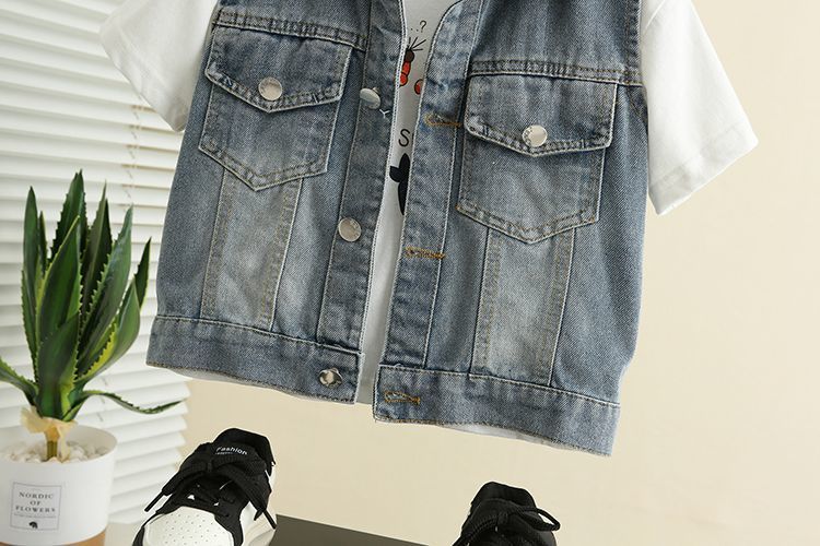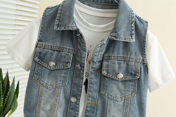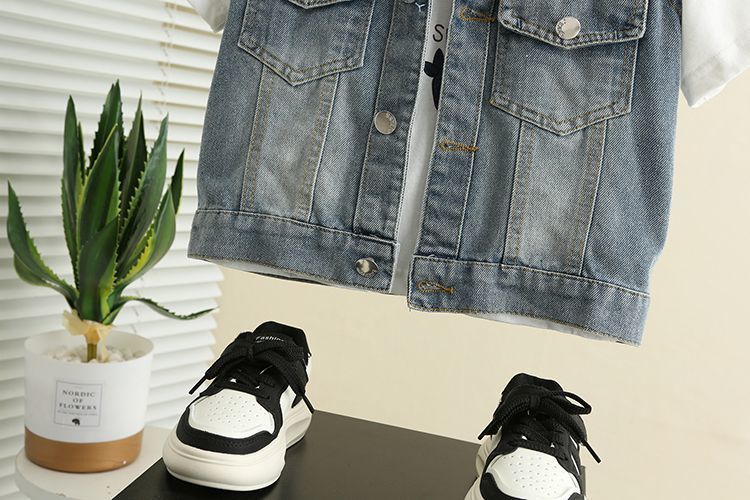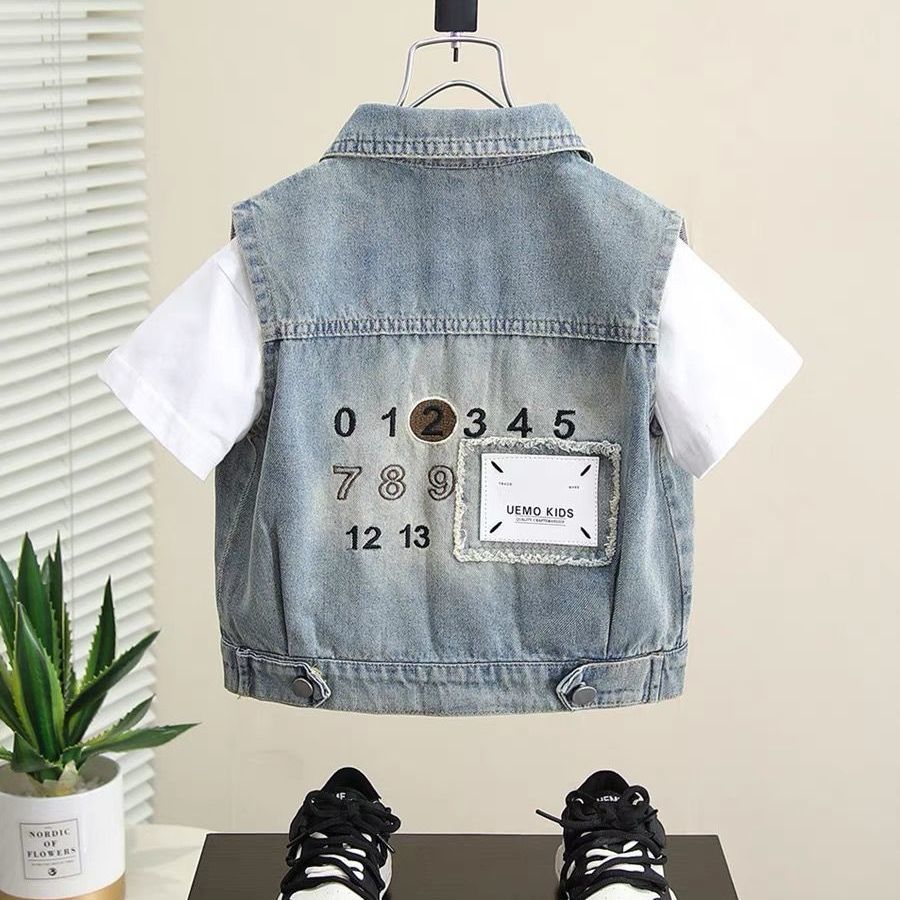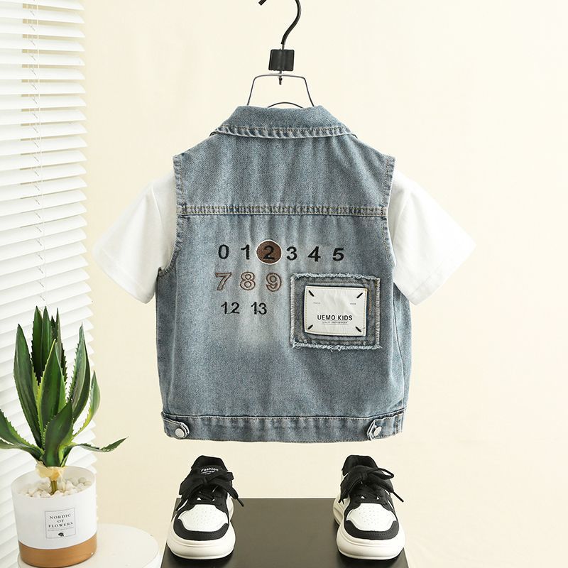 소년과 어린이 데님 조끼 봄과 가을 새로운 스타일 부드러운 아기 겉옷 조끼 잘 생긴 어린이 조끼 얇은 스타일