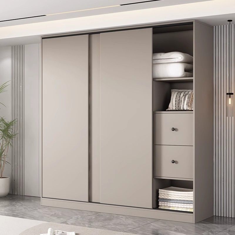 옷장 전체 단단한 나무 슬라이딩 도어 옷장 침실 강력하고 내구성이 뛰어난 임대 간단한 작은 아파트 슬라이딩 도어 슬라이딩 도어 캐비닛