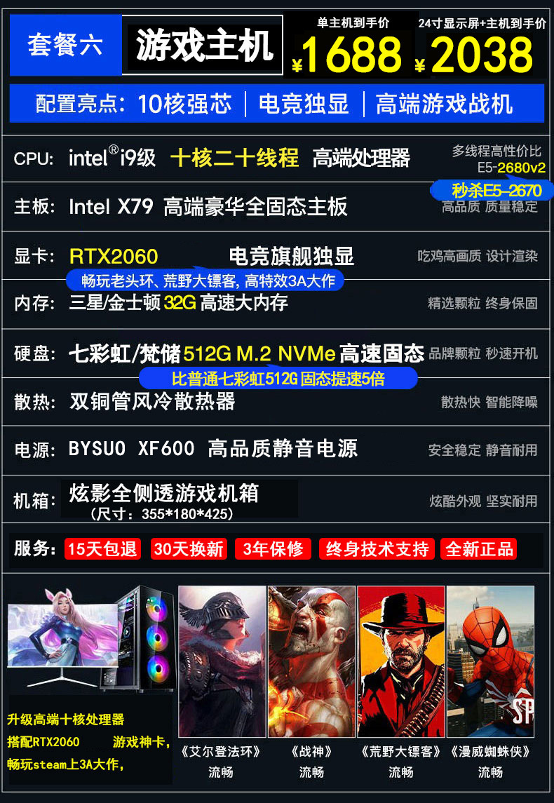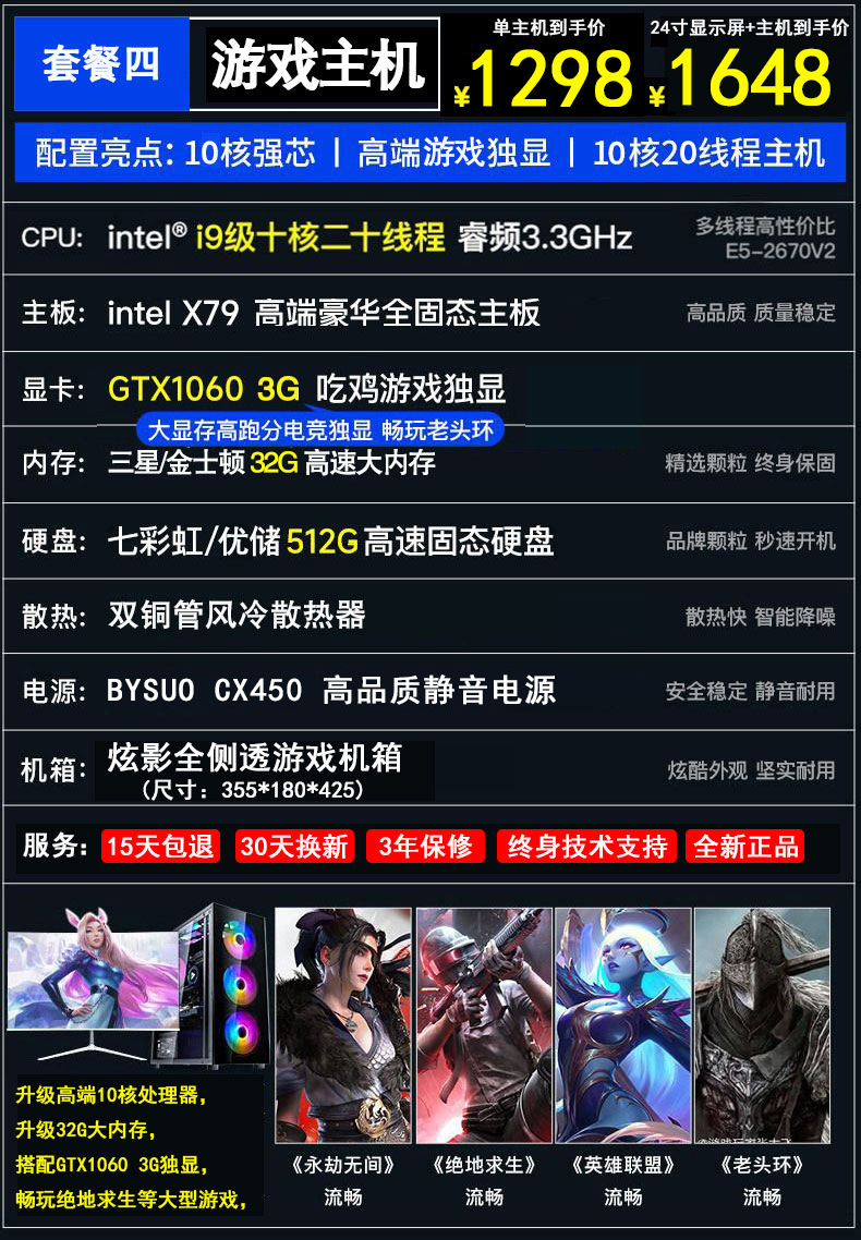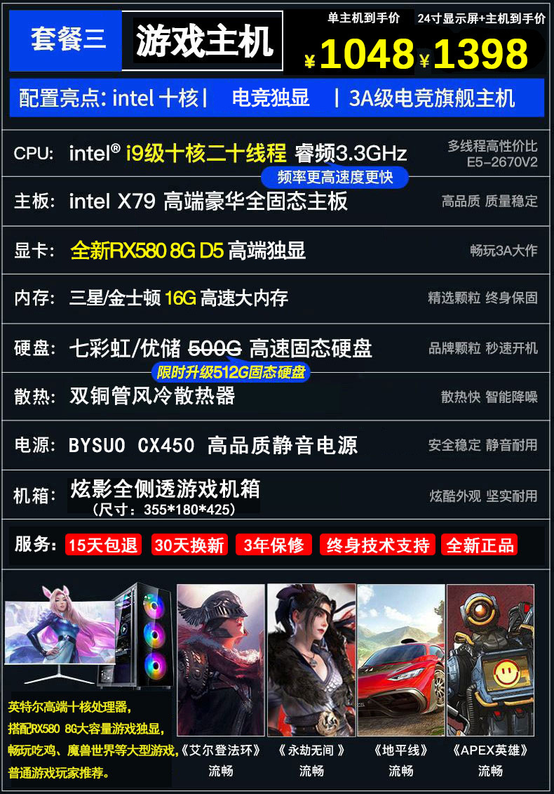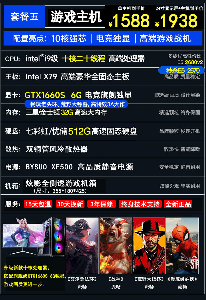 酷睿i9级i5 3070独显LOL电竞游戏直播吃鸡台式电脑主机组装机全套
