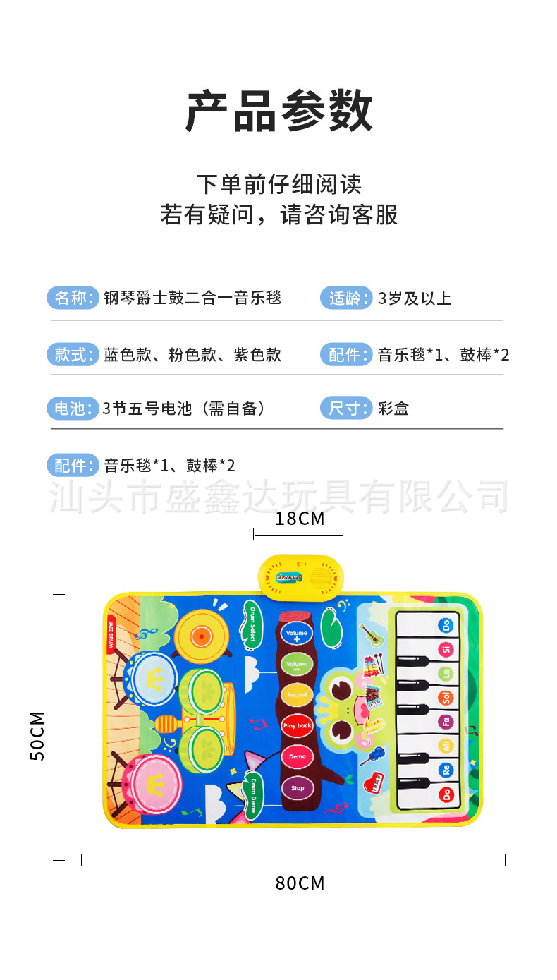 국경 간 아마존 어린이 조기 교육 음악 게임 담요 바닥 매트 드럼 천 피아노 교육 유아 음악 담요 장난감스토어 가기