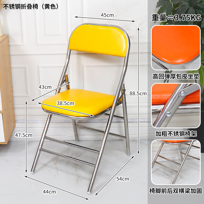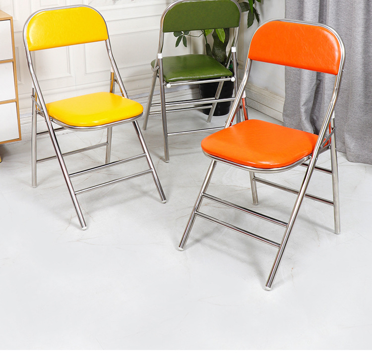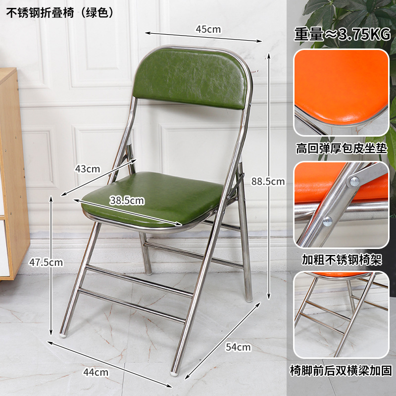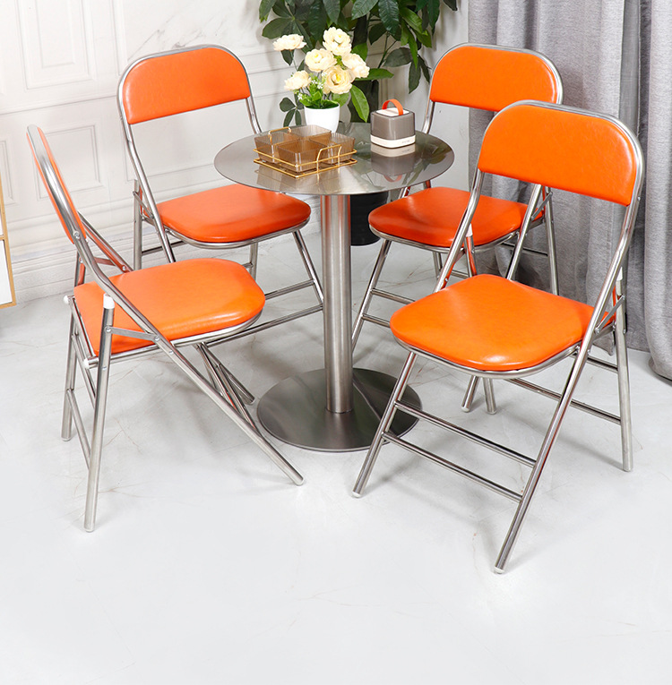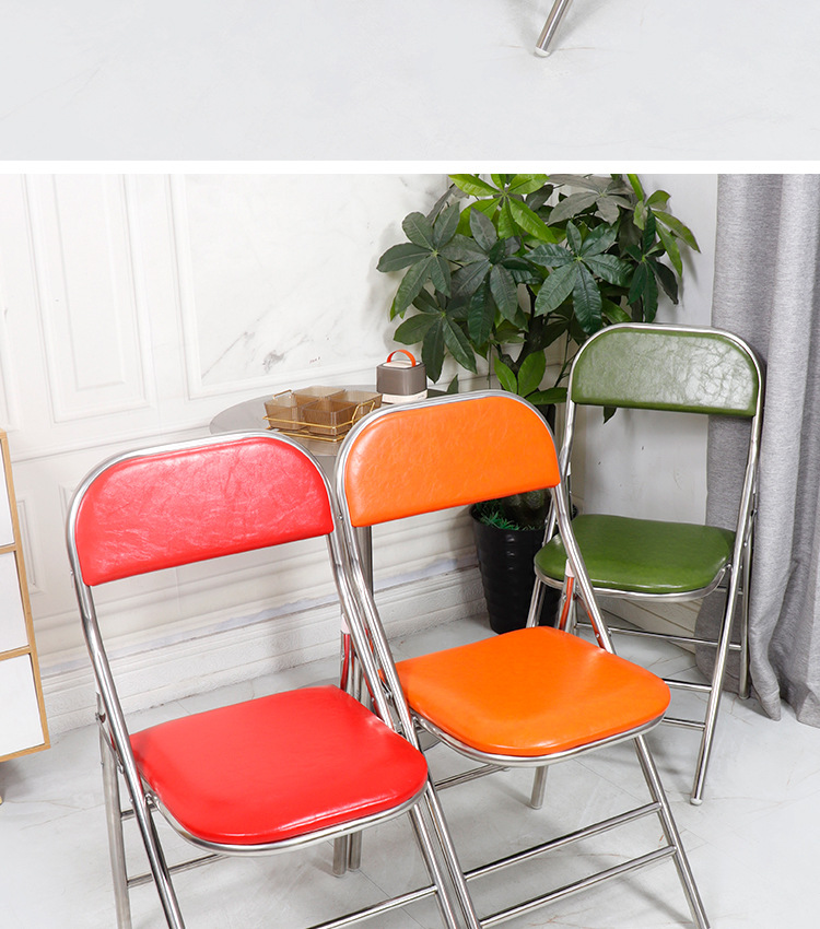 가정용 스테인레스 스틸 접이식 의자 거실 등받이 가죽 의자 홍콩 스타일 차 레스토랑 식당 의자 훈련 의자 레저 좌석