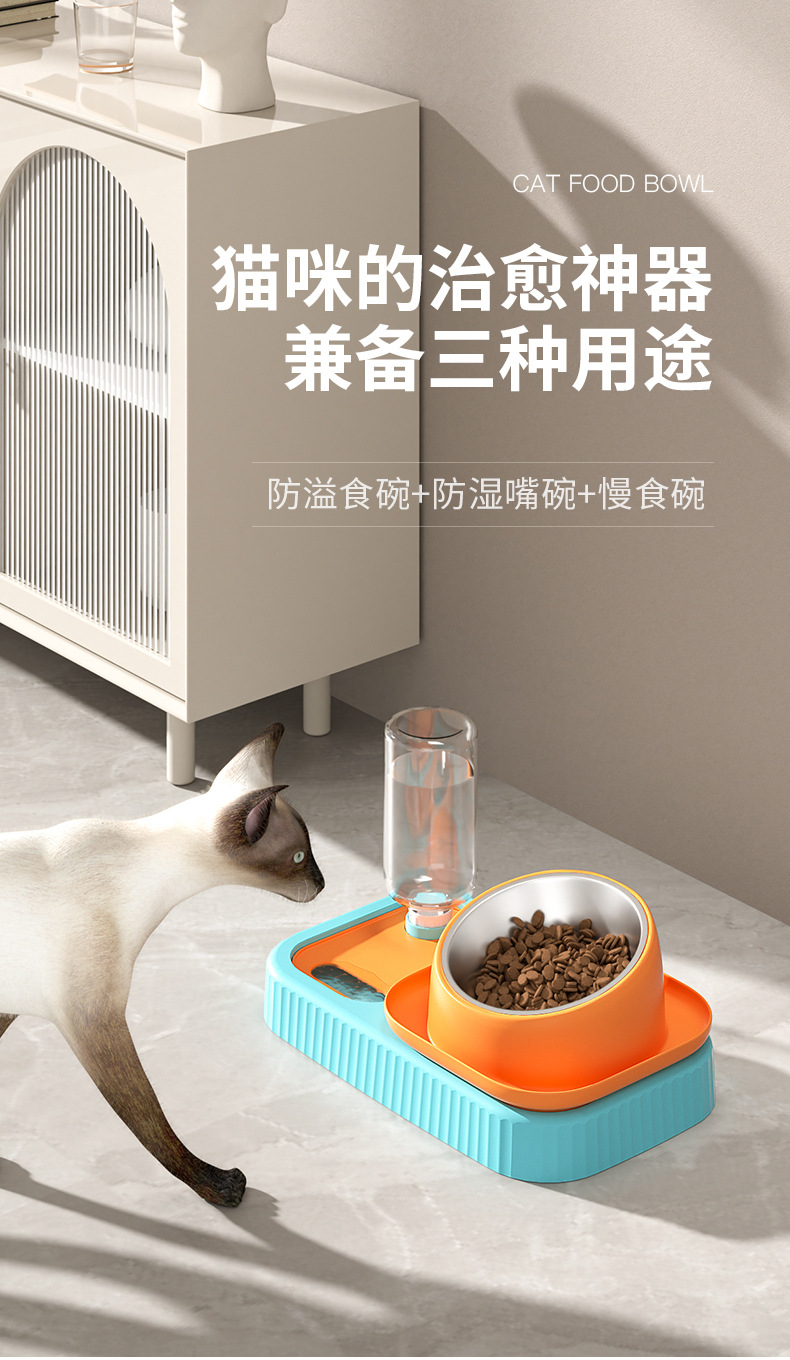 고양이 그릇, 개 그릇, 고양이 사료 그릇, 고양이 사료 자동 급식기, 식수 일체형 고양이 그릇, 세라믹 애완동물 식수 더블 그릇