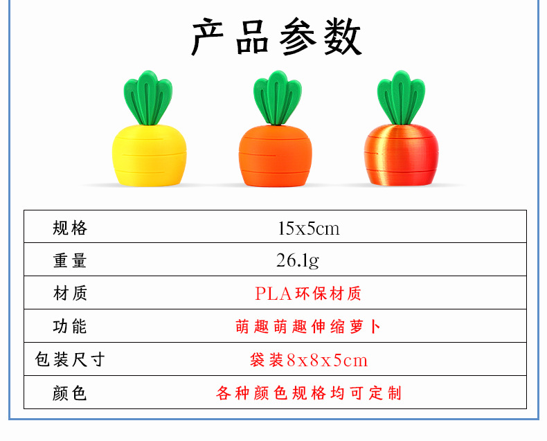 고품질의 창의적인 스트레스 해소 3D 장식품, 수공예품, 텔레스코픽 당근, 문화 및 창의적 선물, 장식 모델, 맞춤형 처리