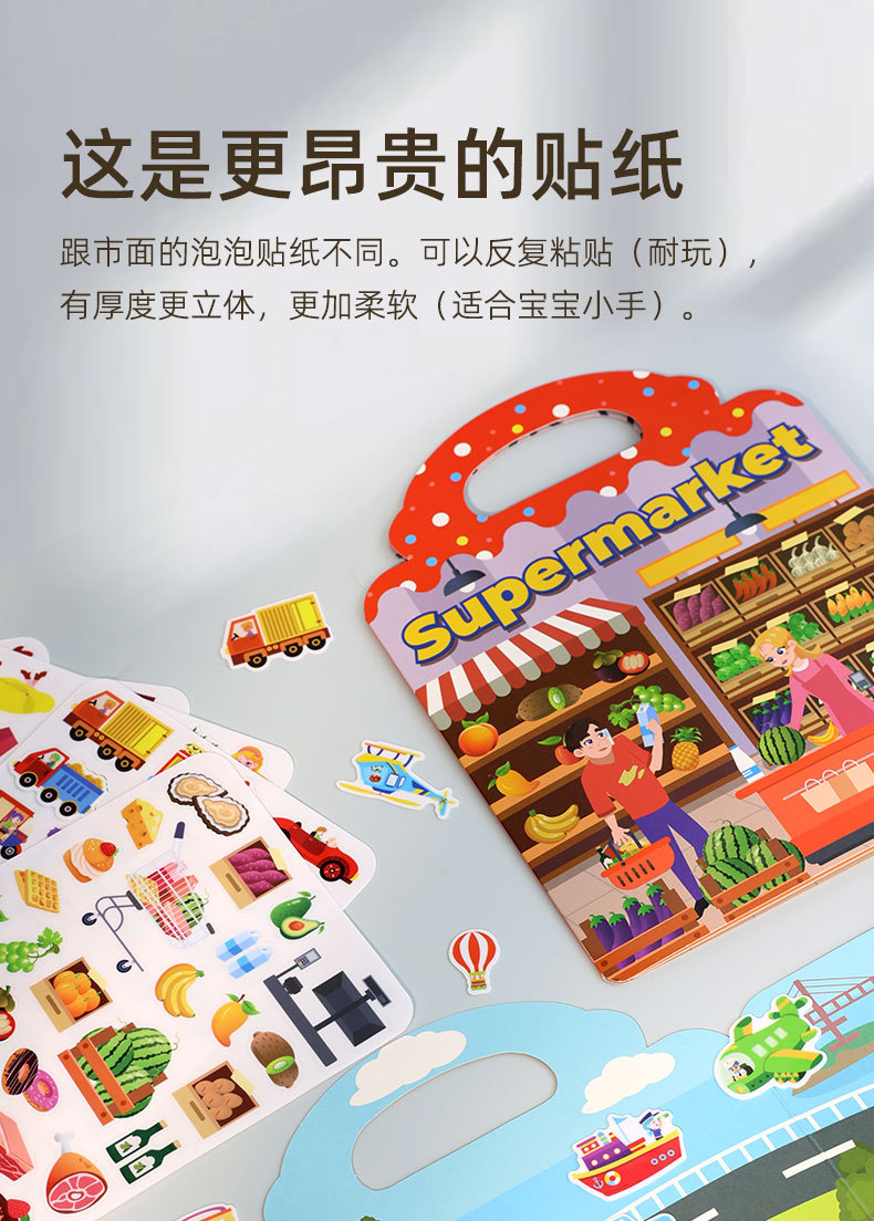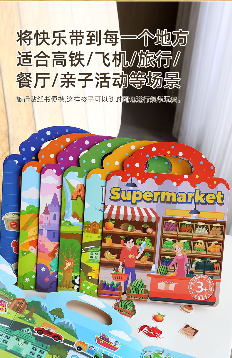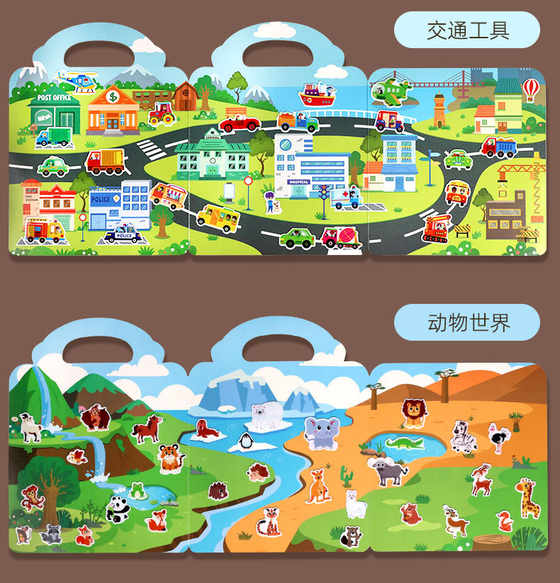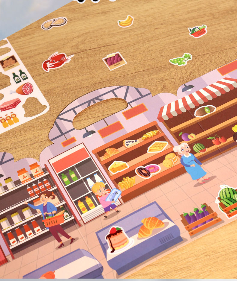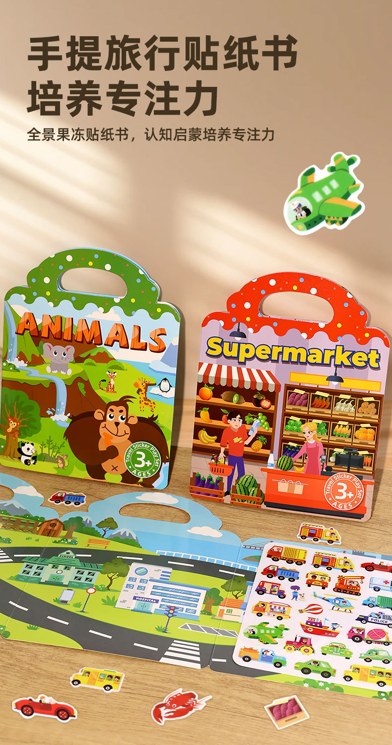 크로스보더 스티커북 젤리 스티커 조용한 책 DIY 재미있는 어린이 장면 스티커 조기 교육 집중력스토어 가기