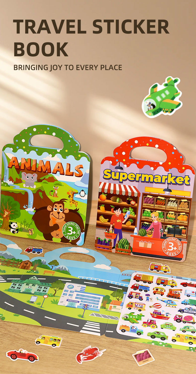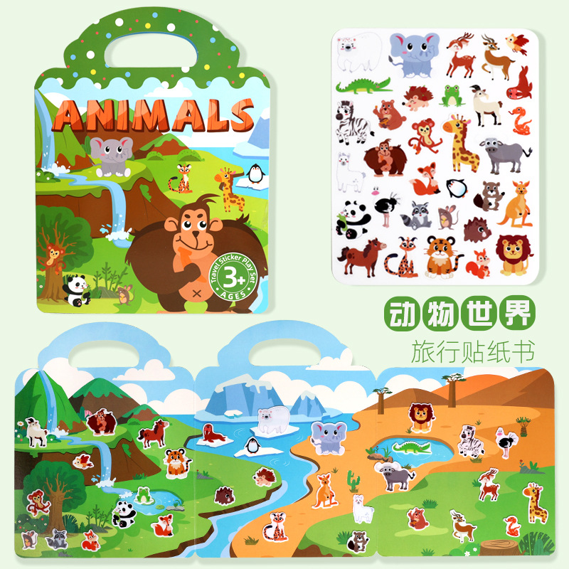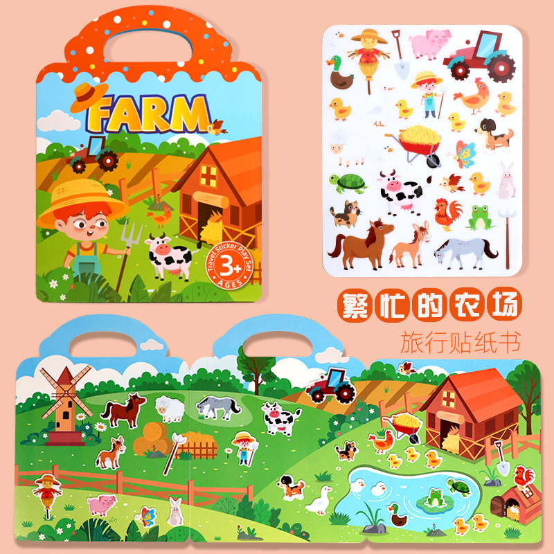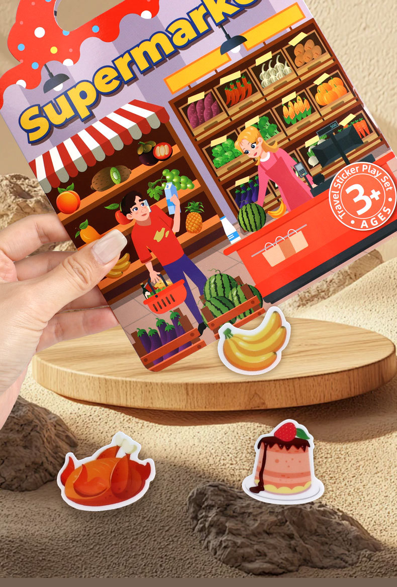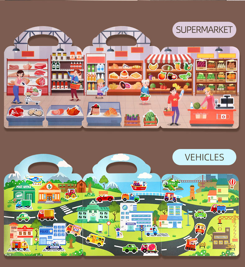 크로스보더 스티커북 젤리 스티커 조용한 책 DIY 재미있는 어린이 장면 스티커 조기 교육 집중력스토어 가기