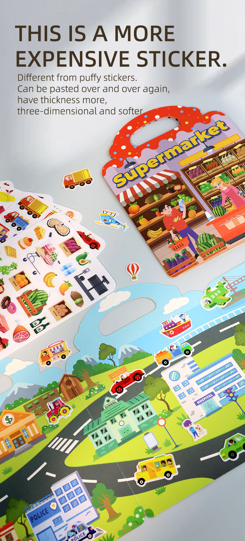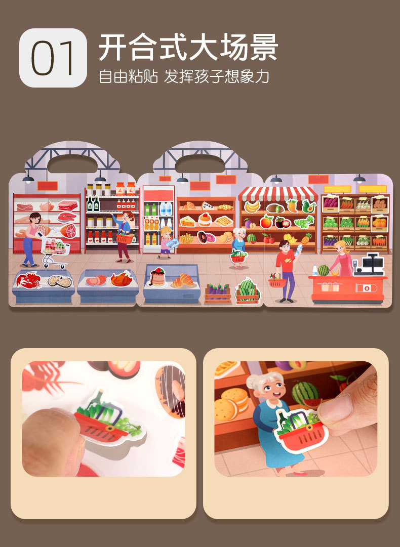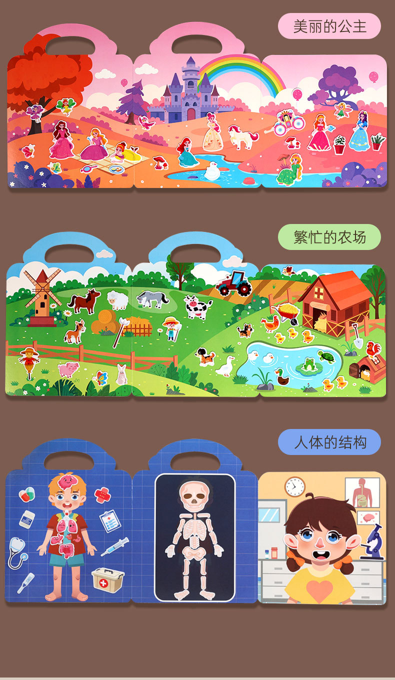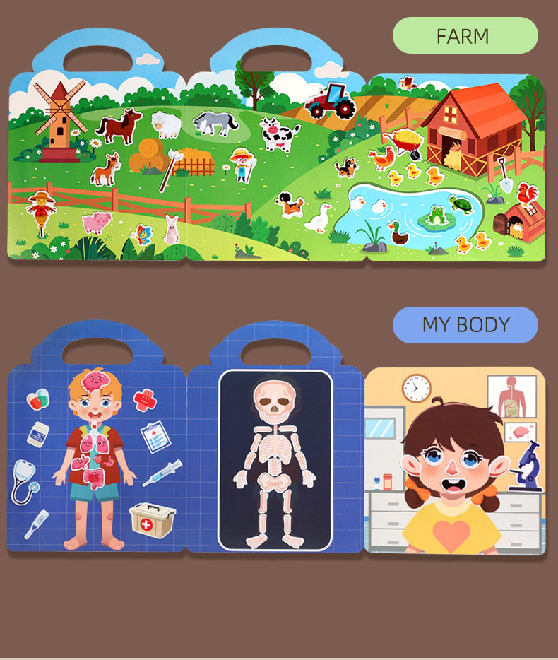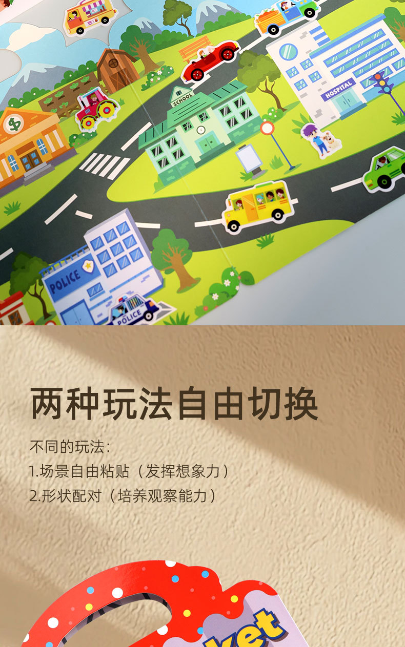 크로스보더 스티커북 젤리 스티커 조용한 책 DIY 재미있는 어린이 장면 스티커 조기 교육 집중력스토어 가기