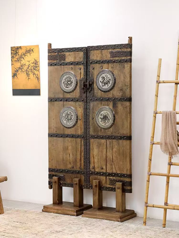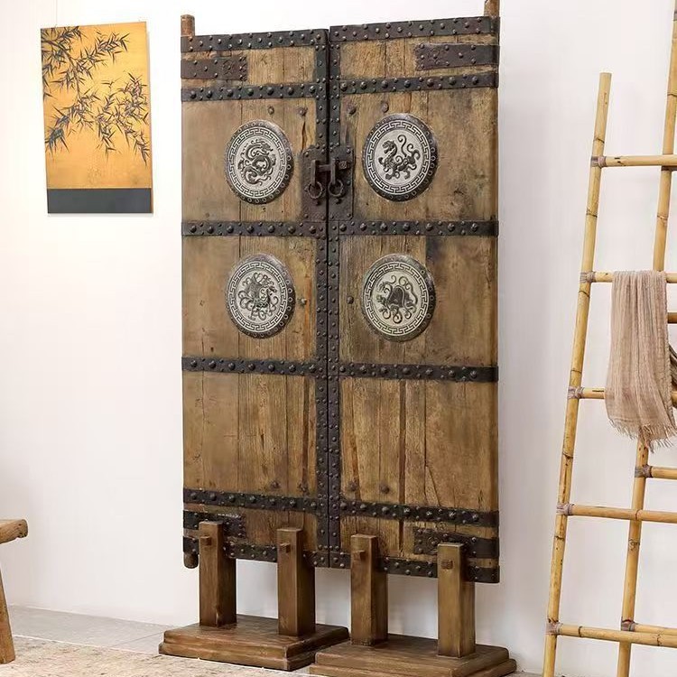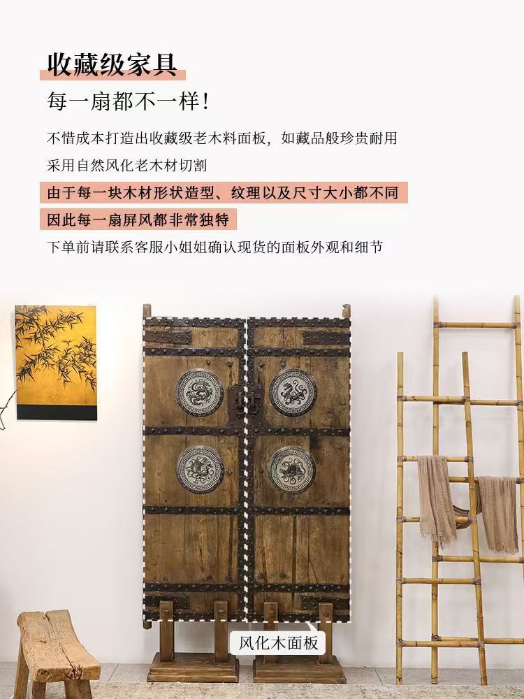 복고풍 와비사비 스타일의 칸막이 현관 스크린으로 거실 배경 장식을 차단하고 오래된 느릅나무 문 패널과 오래된 물건을 보호합니다.스토어 가기