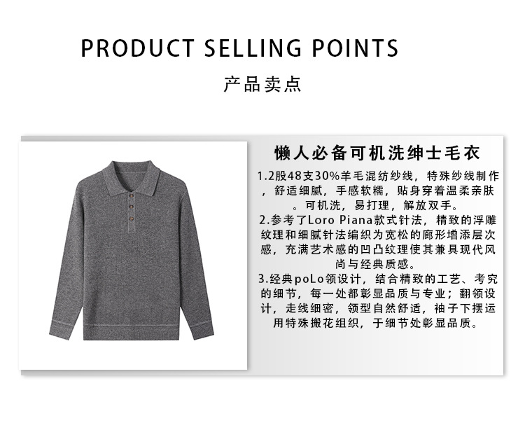 30 울 2025 새로운 가을 겨울 남성 POLP 칼라 통근 다용도 기질 긴팔 풀오버 탑 스웨터스토어 가기