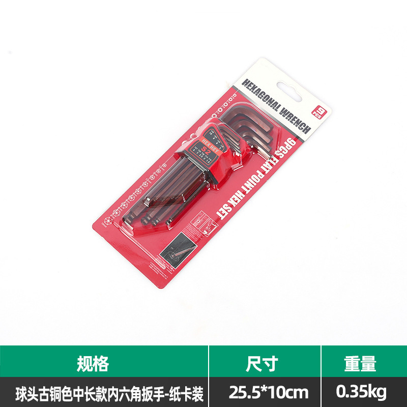 • 볼 헤드 청동 중간 길이 육각 렌치 - 종이 카드