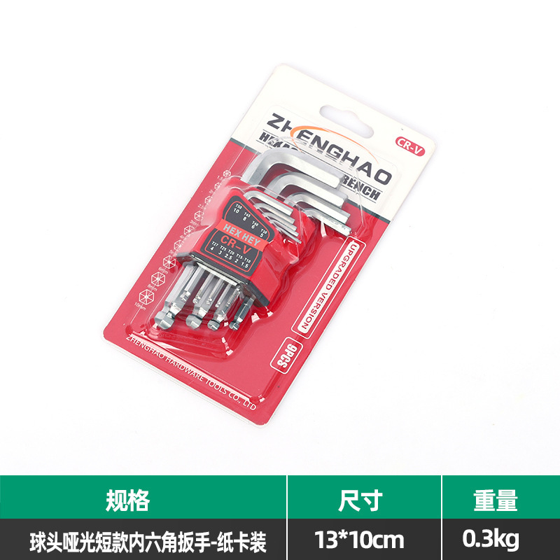 • 볼 헤드 무광택 짧은 육각 렌치 - 종이 카드