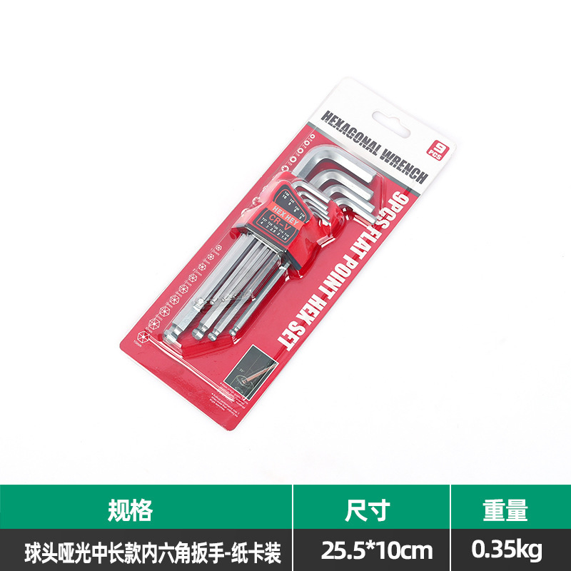 • 볼 헤드 무광택 중간 길이 육각 렌치 - 종이 카드 포장