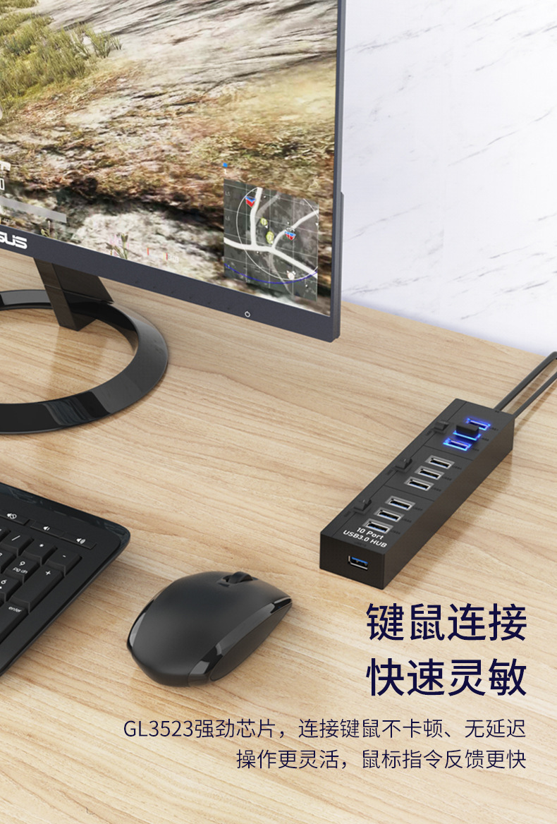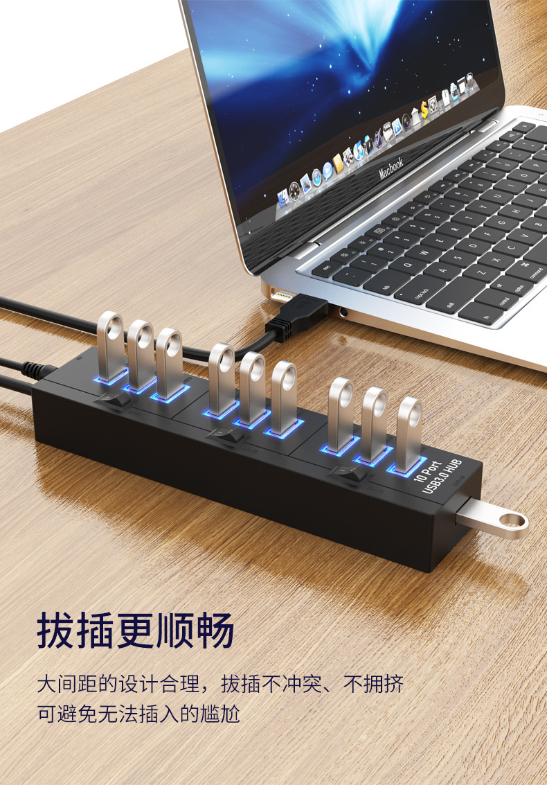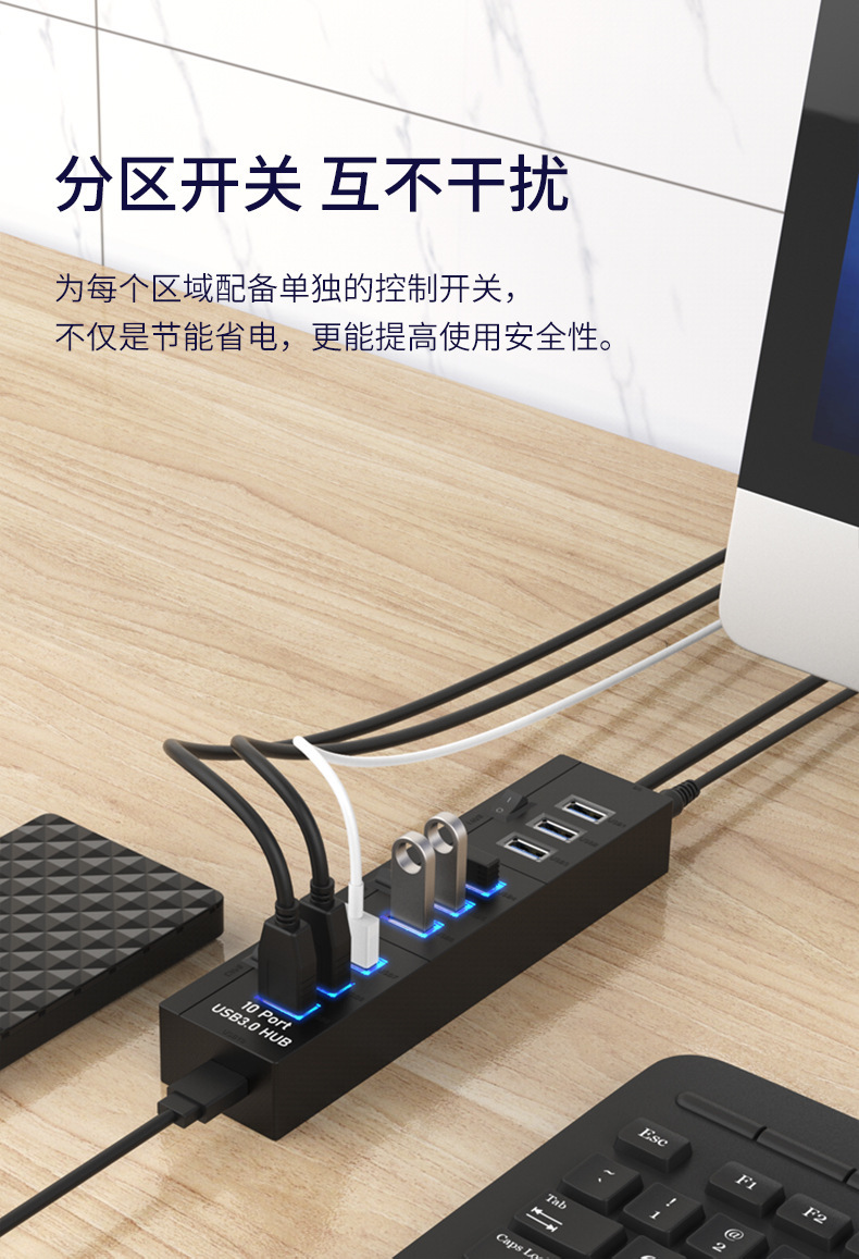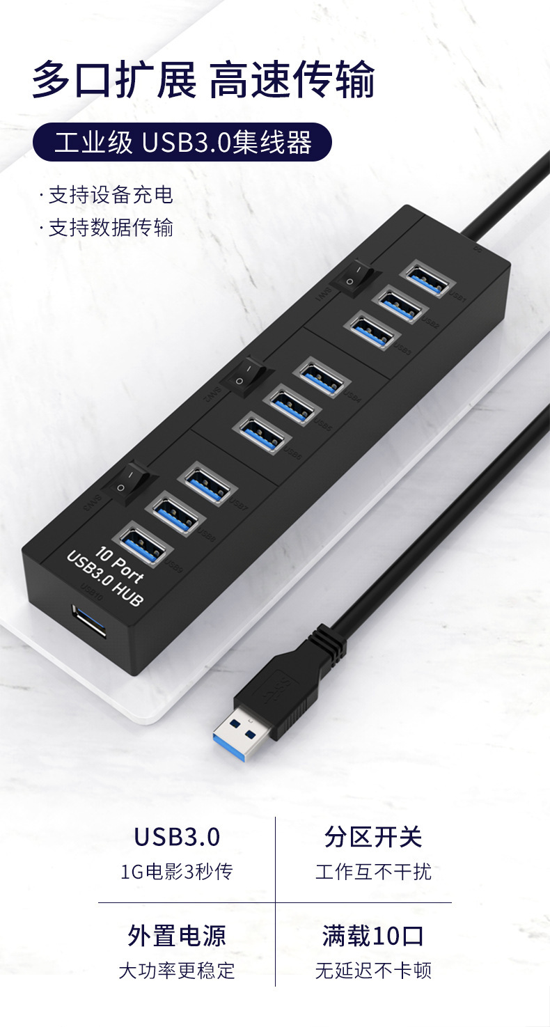독립 전원 공급 장치가 있는 도킹 스테이션 USB10 포트 분배기 3.0 1-10 HUB 도킹 스테이션 허브 분배기스토어 가기