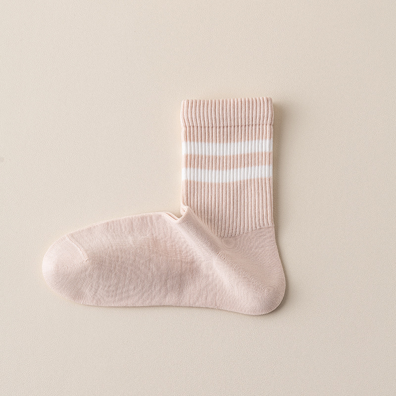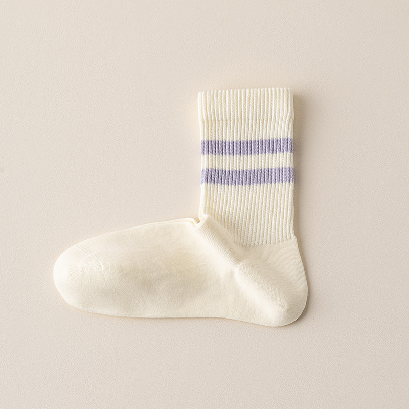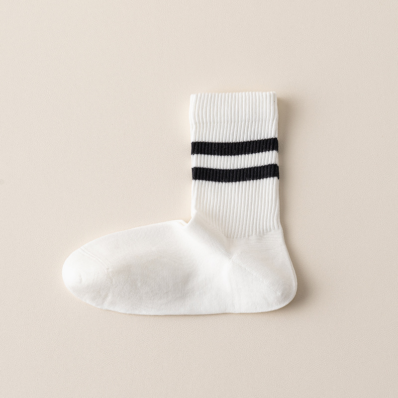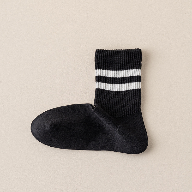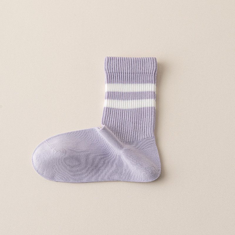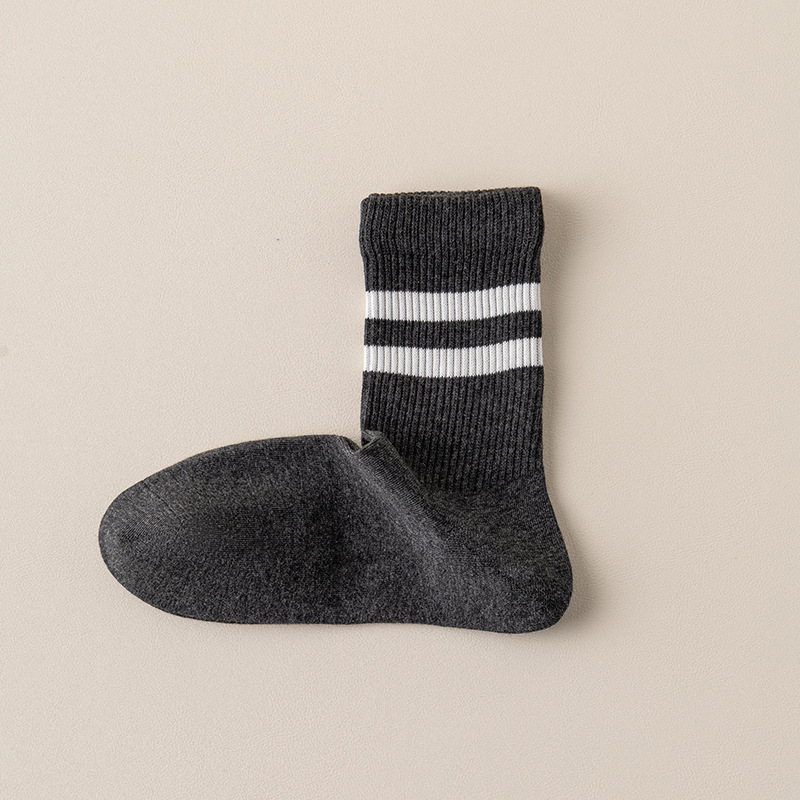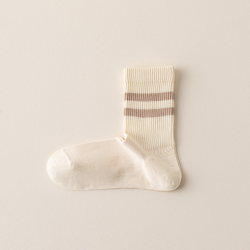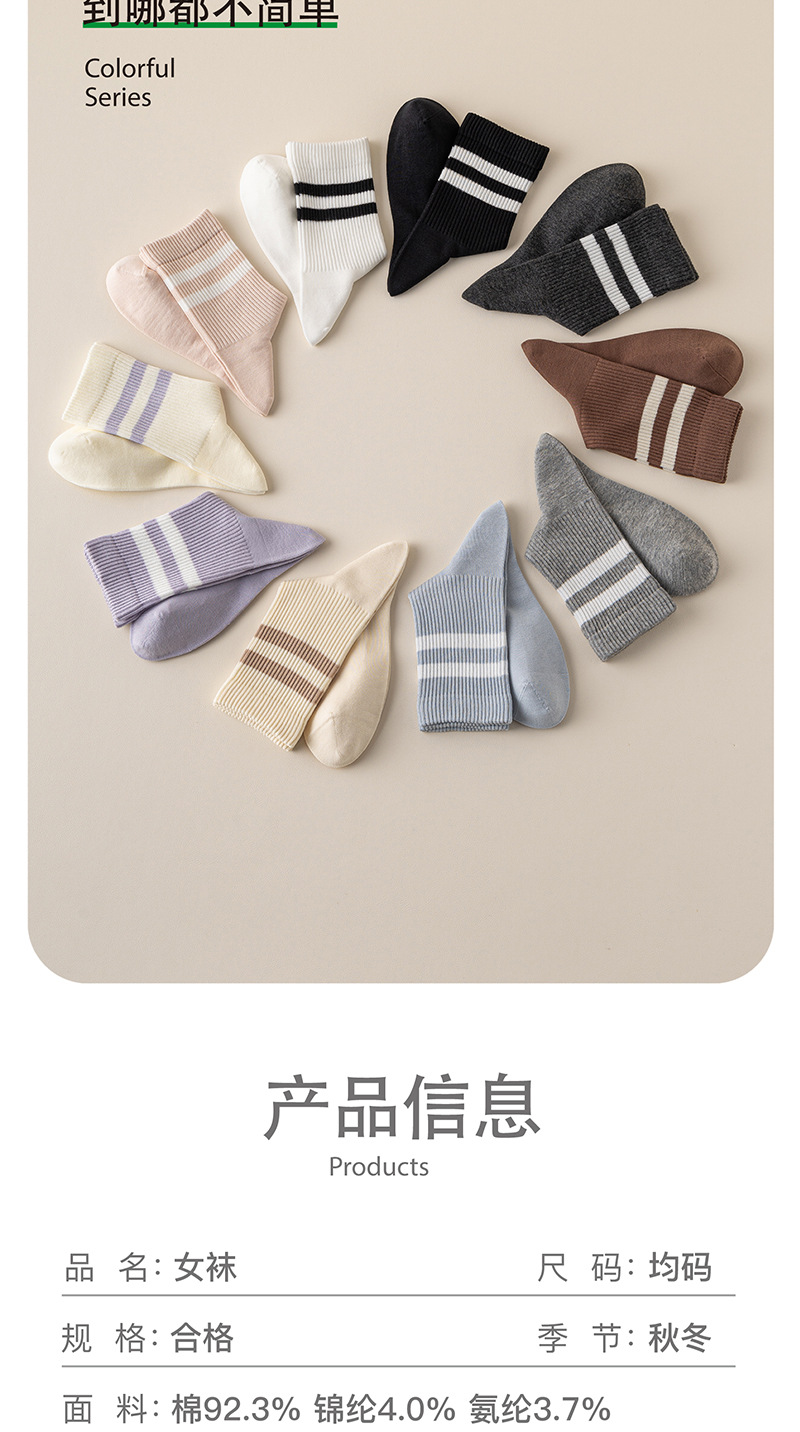 Zhuji 양말 학교 가로 줄무늬 여성용 중간 튜브 직각 양말 가을, 겨울 항균 및 탈취제 캐주얼 통기성 미끄럼 방지면 양말스토어 가기