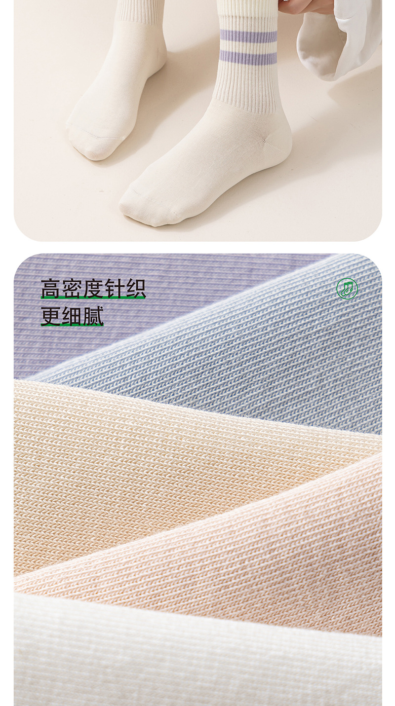 Zhuji 양말 학교 가로 줄무늬 여성용 중간 튜브 직각 양말 가을, 겨울 항균 및 탈취제 캐주얼 통기성 미끄럼 방지면 양말