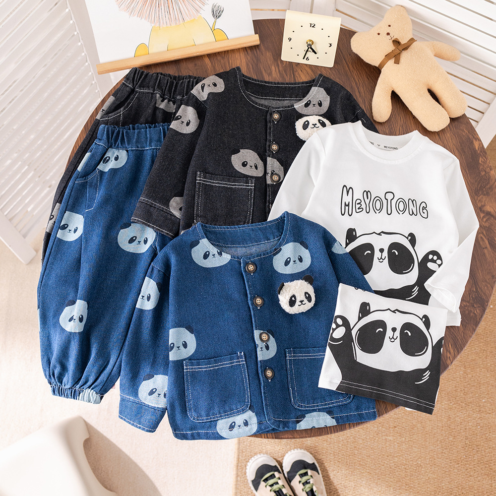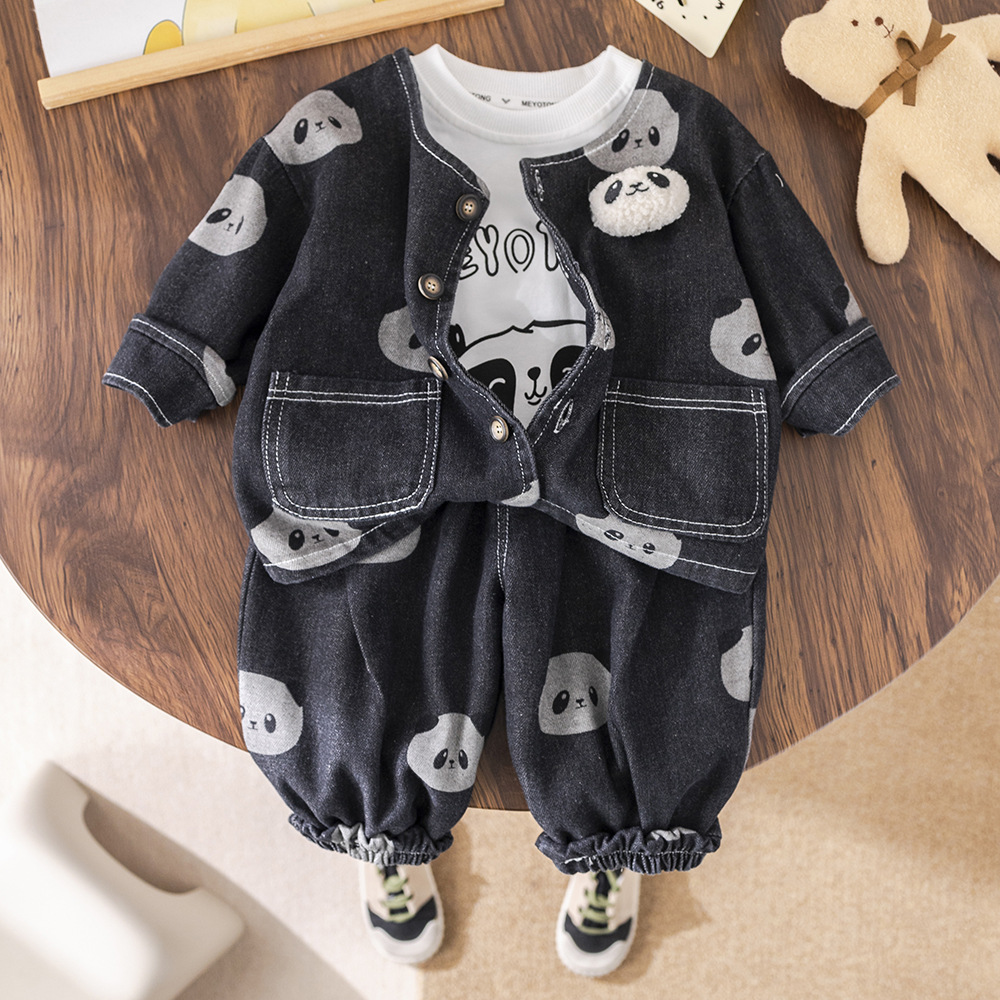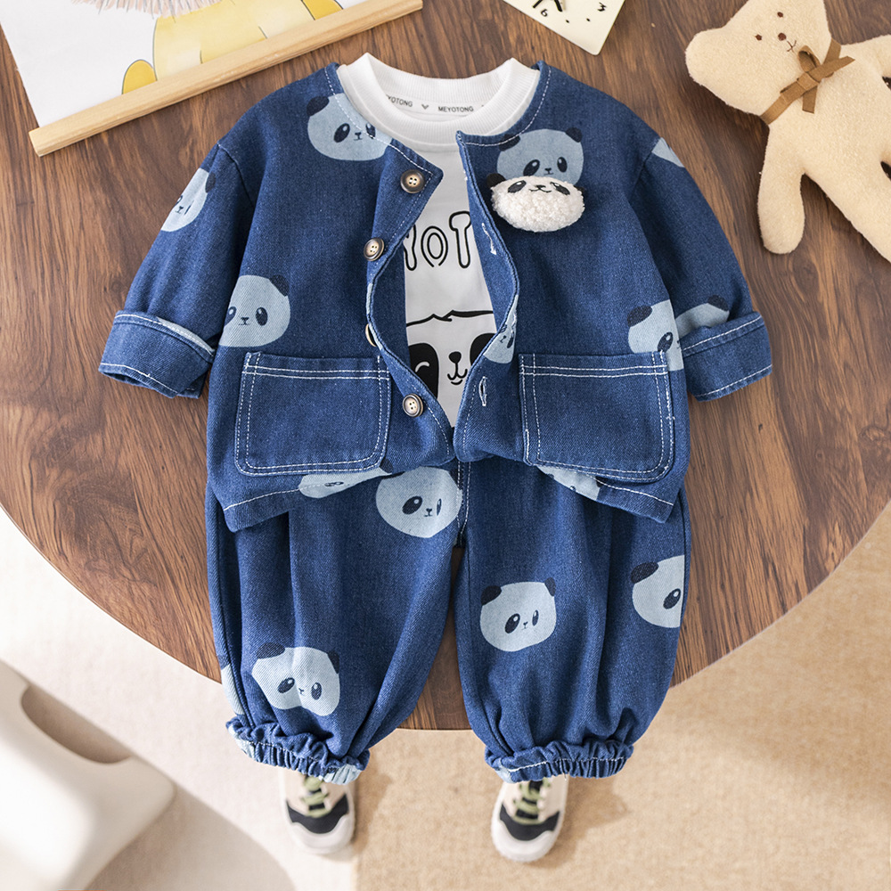 소년 긴팔 데님 3 피스 양복 팬더 데님 재킷 한국 스타일 청바지 도매 만화 아동복스토어 가기