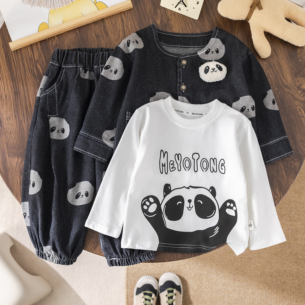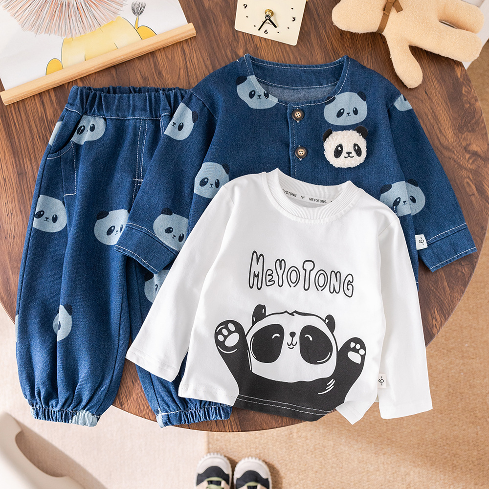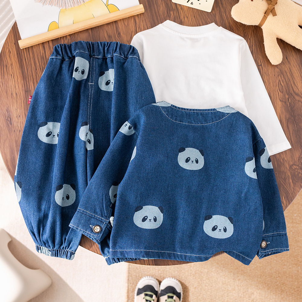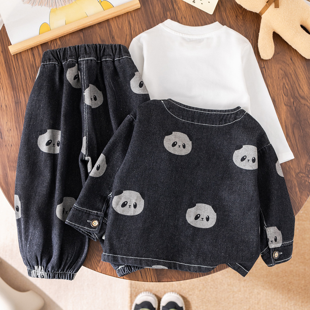소년 긴팔 데님 3 피스 양복 팬더 데님 재킷 한국 스타일 청바지 도매 만화 아동복스토어 가기