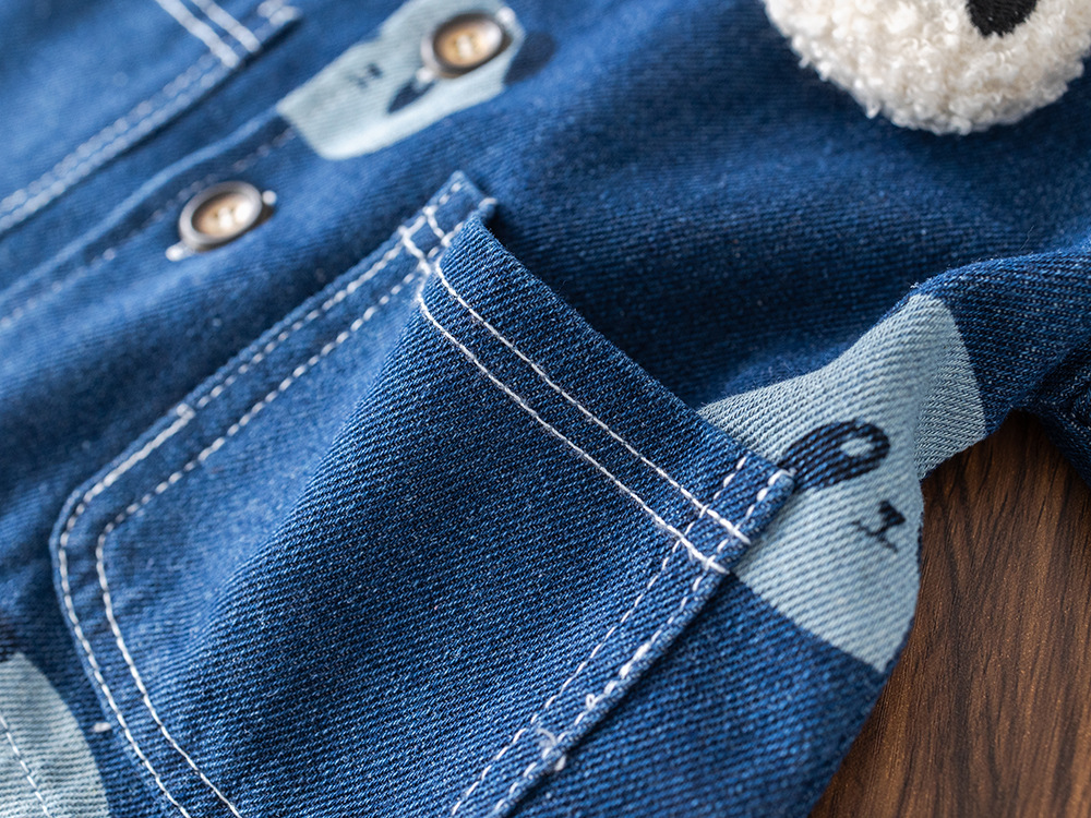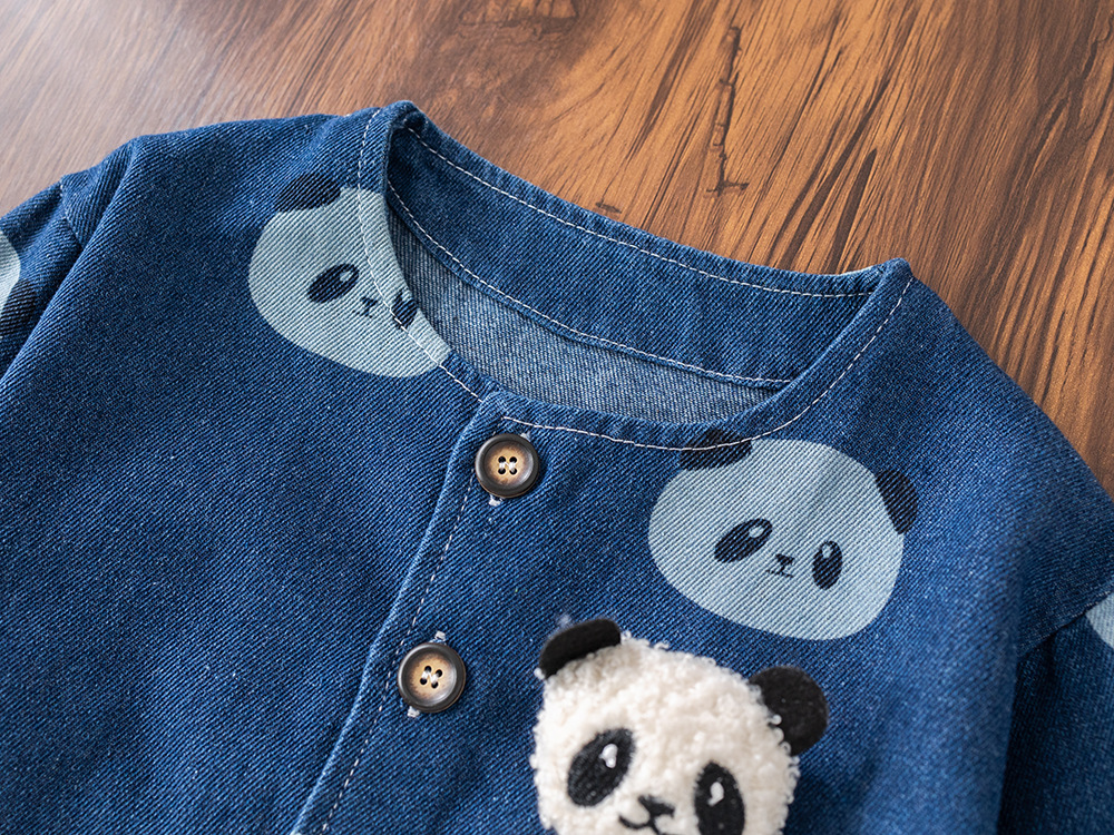 소년 긴팔 데님 3 피스 양복 팬더 데님 재킷 한국 스타일 청바지 도매 만화 아동복