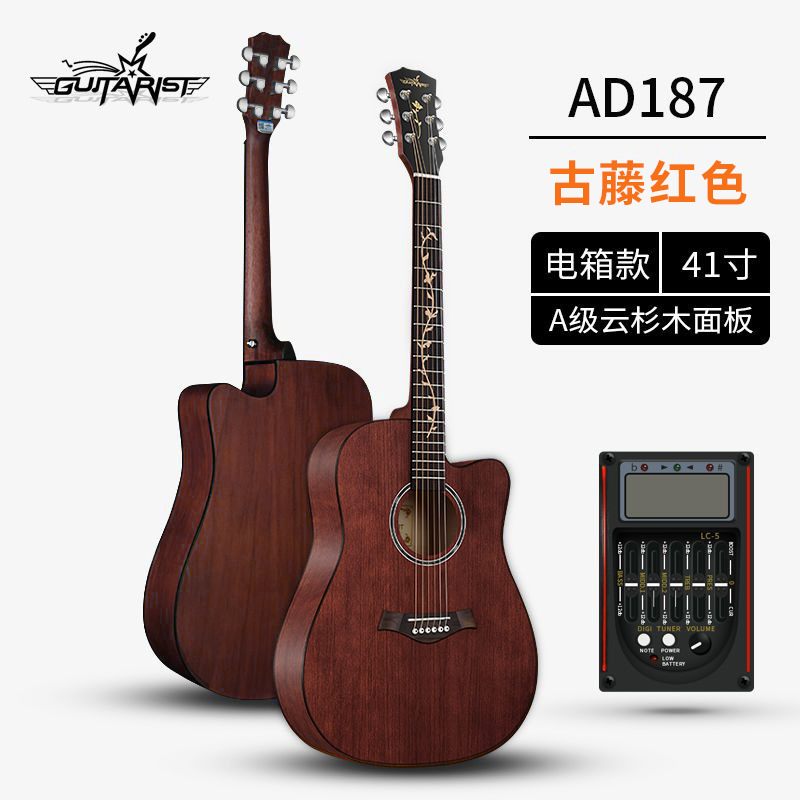 • 포크 기타 41inch Fujihua 레드 일렉트릭 박스 EQ