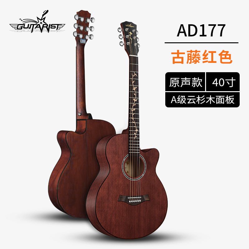 • 포크 기타 40inch Fujihua 레드 일렉트릭 박스 EQ