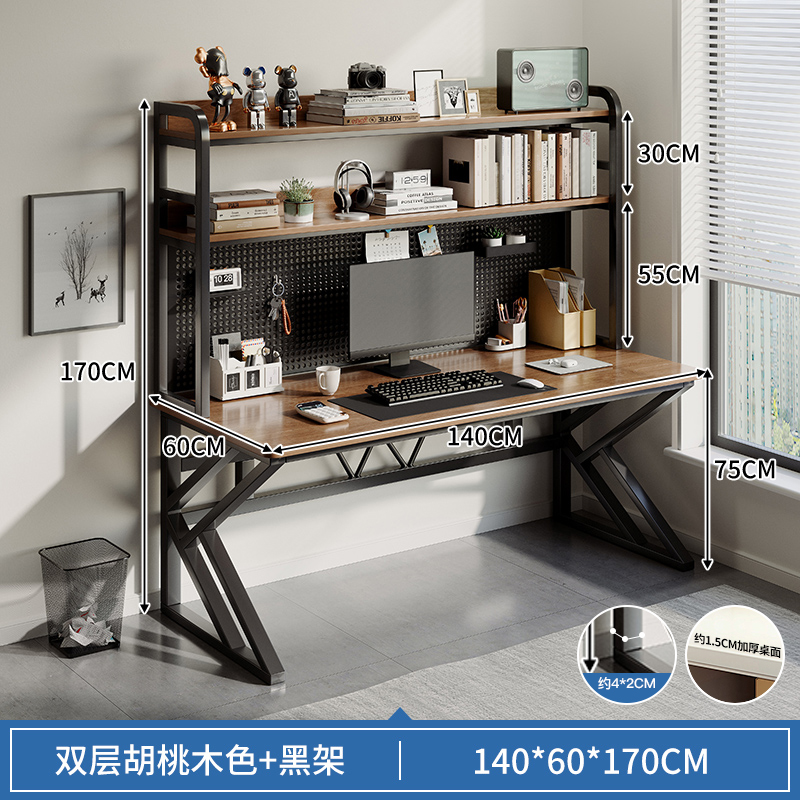 • [업그레이드 된 두꺼운 K 자형 다리] 15MM 데스크탑 두꺼운 40MM 강철 프레임 - 호두 색상 140*60*170 구멍 보드 포함