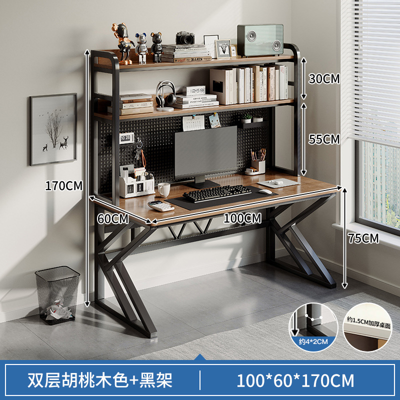 • [업그레이드 된 두꺼운 K 자형 다리] 15MM 데스크탑 두꺼운 40MM 강철 프레임 호두 색상 100*60*170 구멍 보드 포함