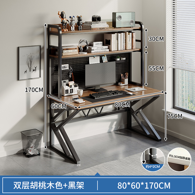 • [업그레이드 된 두꺼운 K 자형 다리] 15MM 데스크탑 두꺼운 40MM 강철 프레임 - 호두 색상 80*60*170 구멍 보드 포함