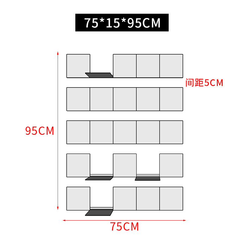• 검정색 5단 5열 75*15*95