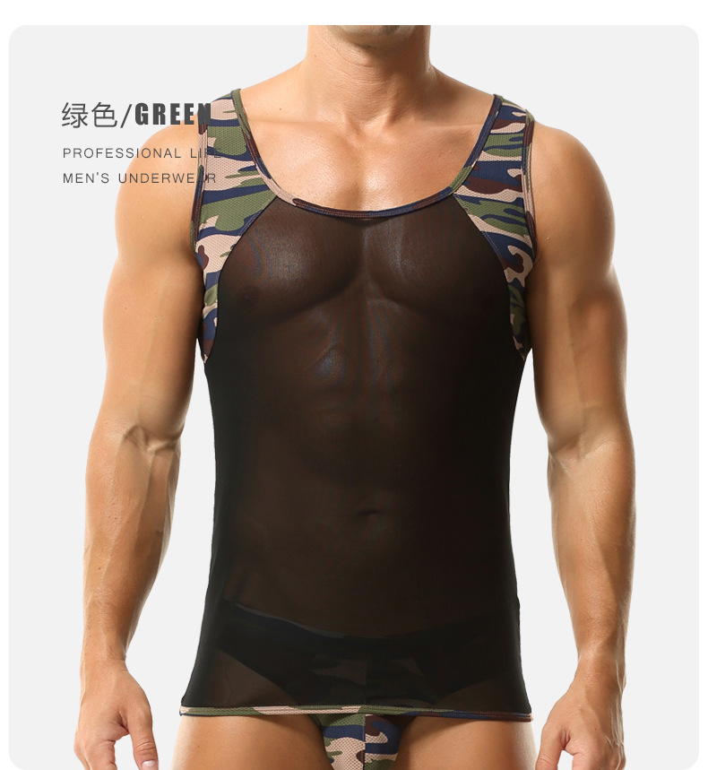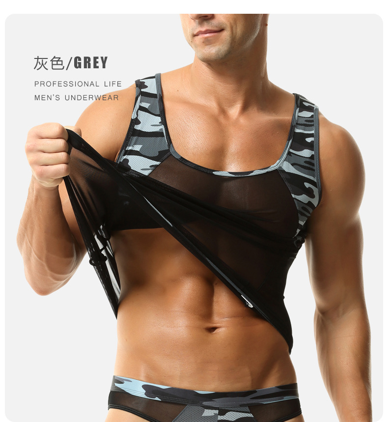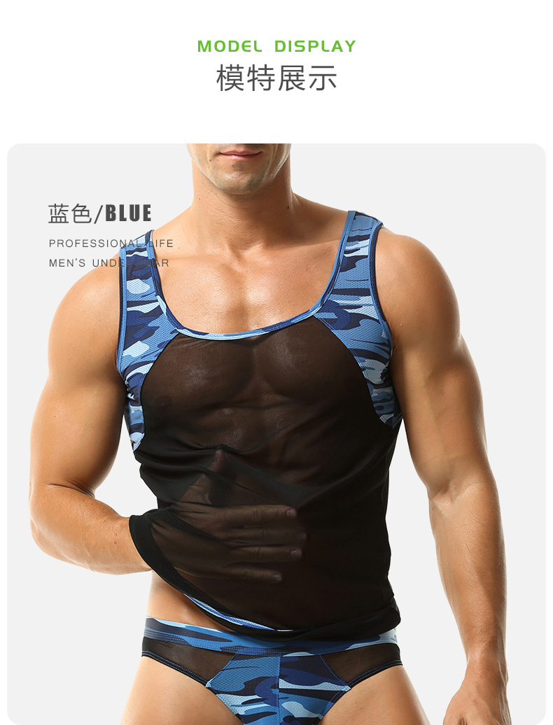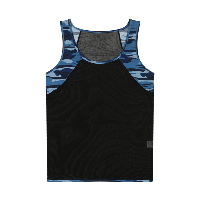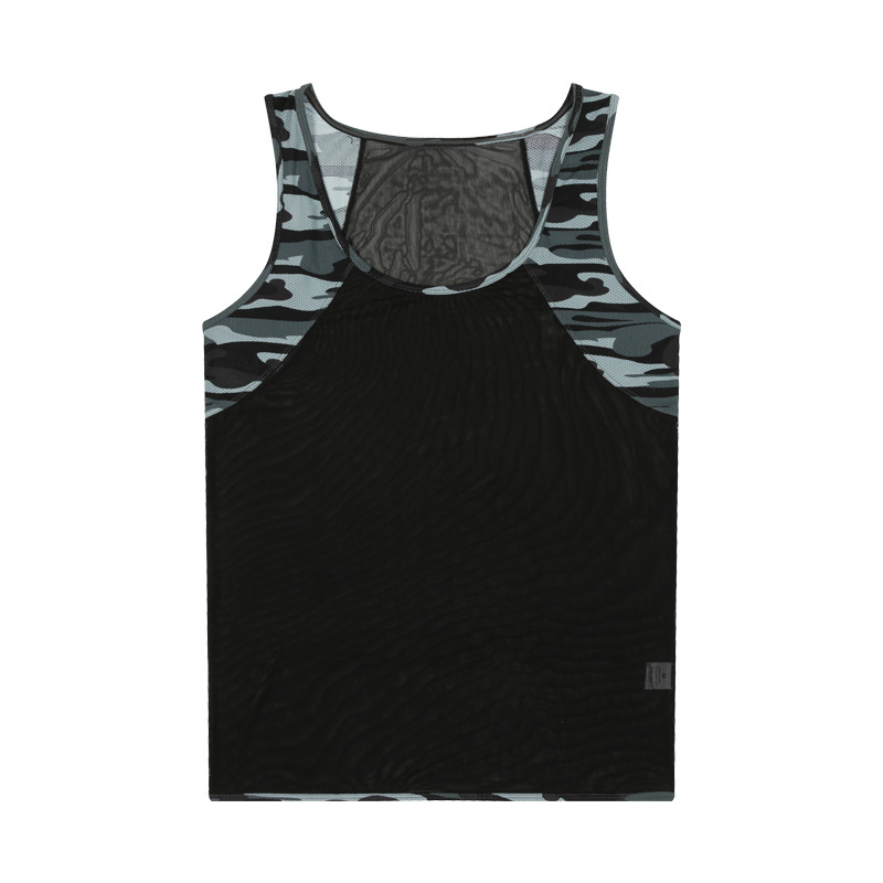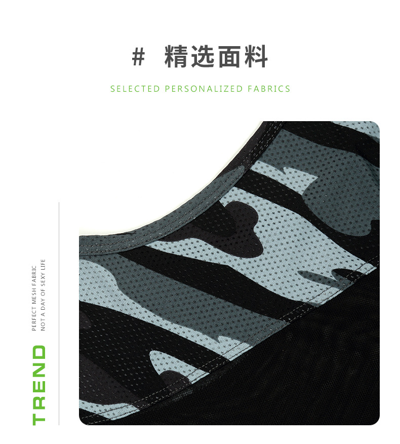 국경을 넘는 인기 남성 위장 메쉬 조끼 탄성 통기성 컬러 블록 피트니스 요가 운동복 청소년 트렌드스토어 가기