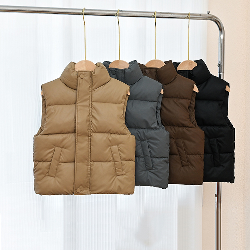 새로운 2025 가을, 겨울 남성과 여성의 겨울 의류 어린이 두꺼운 양가죽 스탠드 칼라 조끼 코트 한국 스타일 아동 코트 조끼스토어 가기