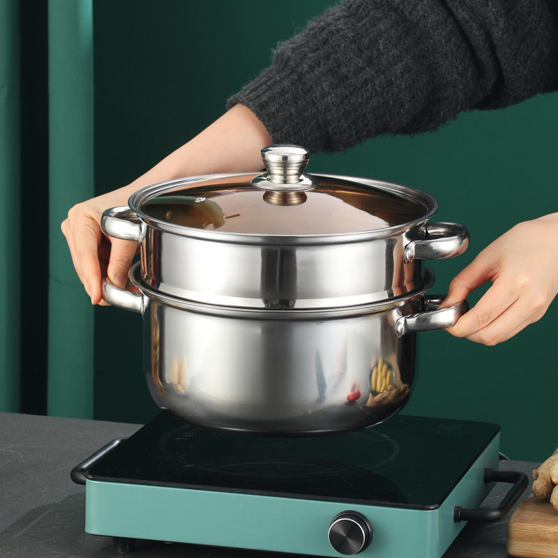 24cm 더블 레이어 스티머 스테인레스 스틸 두꺼운 가정용 죽 인덕션 밀크 팬 스티머 수프 가스 주방 다목적스토어 가기