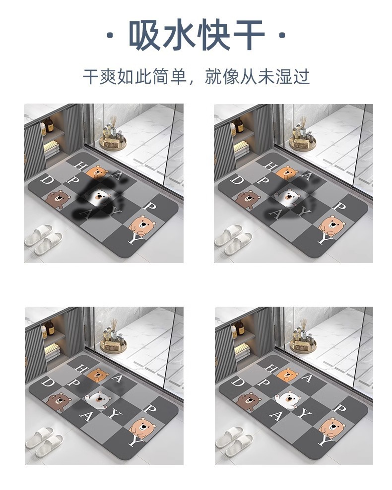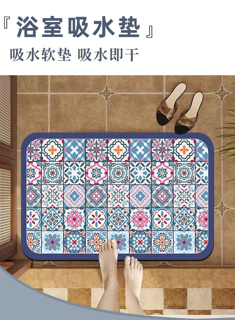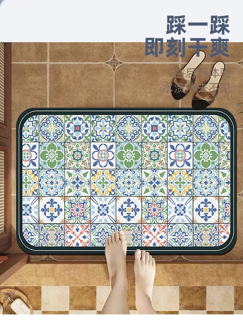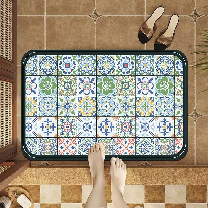 미국 복고풍 규조토 진흙 부드러운 욕실 빠른 건조 발 매트 욕실 흡수성 미끄럼 방지 도어 매트 화장실 바닥 매트 도매스토어 가기