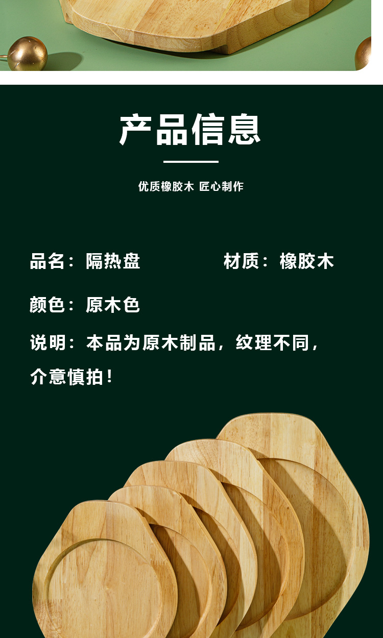 두꺼운 참나무 원목 플레이스매트, 단열 베이스, 둥근 캐서롤 베이스 트레이, 귀가 있는 화상 방지 테이블 매트, 상업용스토어 가기