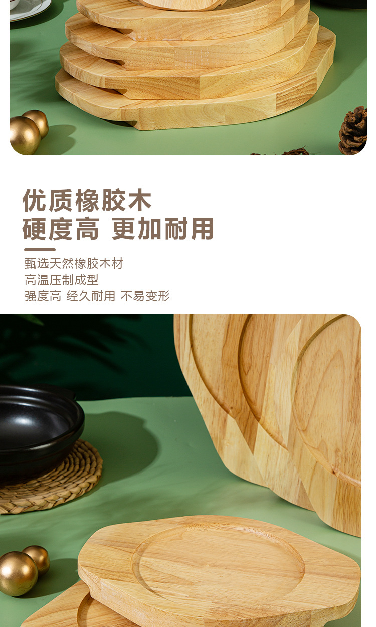 두꺼운 참나무 원목 플레이스매트, 단열 베이스, 둥근 캐서롤 베이스 트레이, 귀가 있는 화상 방지 테이블 매트, 상업용