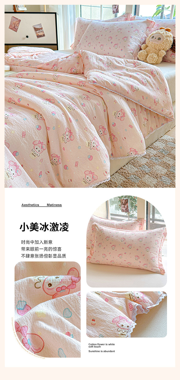 새로운 퀼트 자카드 워시 코튼 어린이 여름 이불 작은 신선한 인쇄 베개 커버 에어컨 이불 여름 이불 3 피스 세트