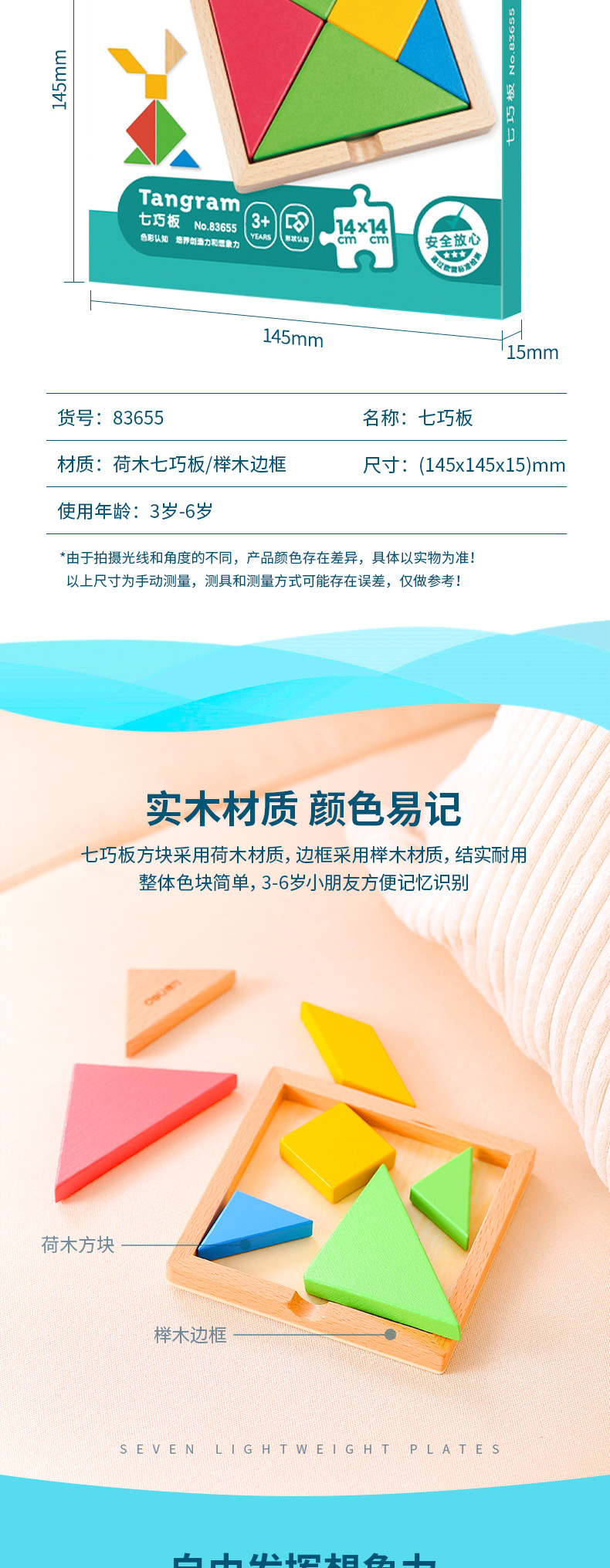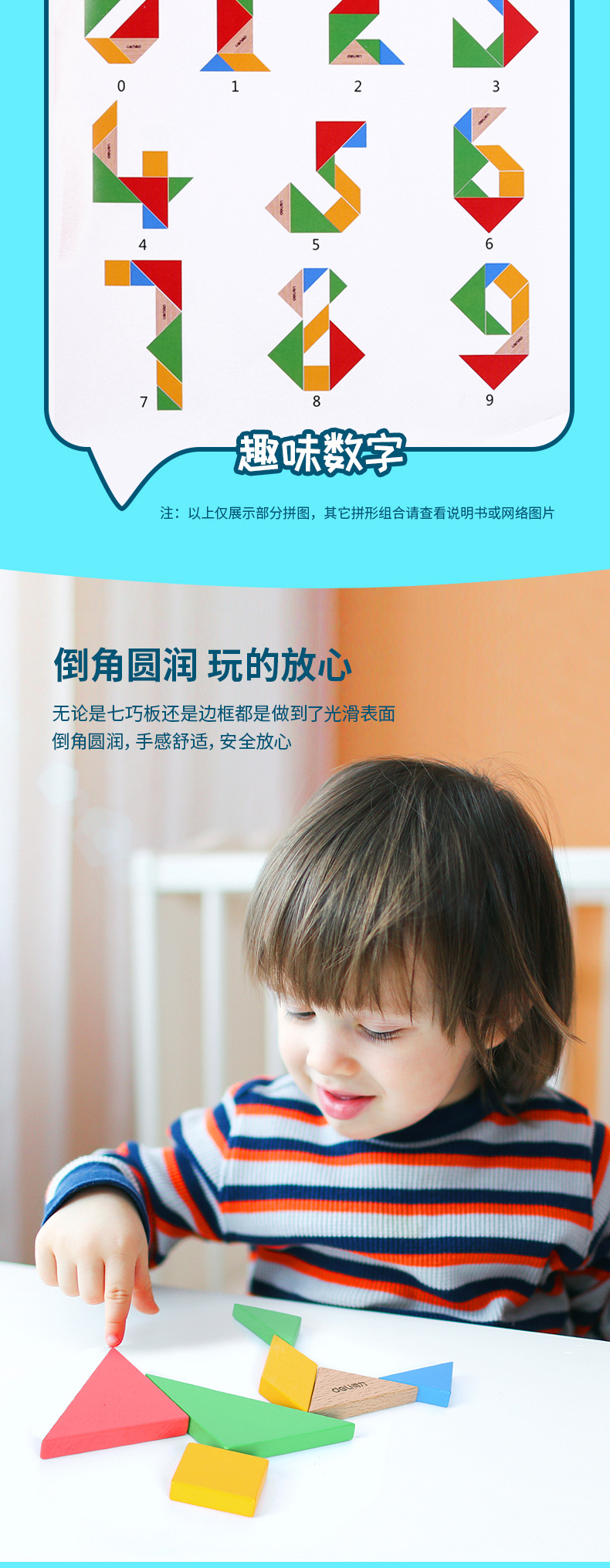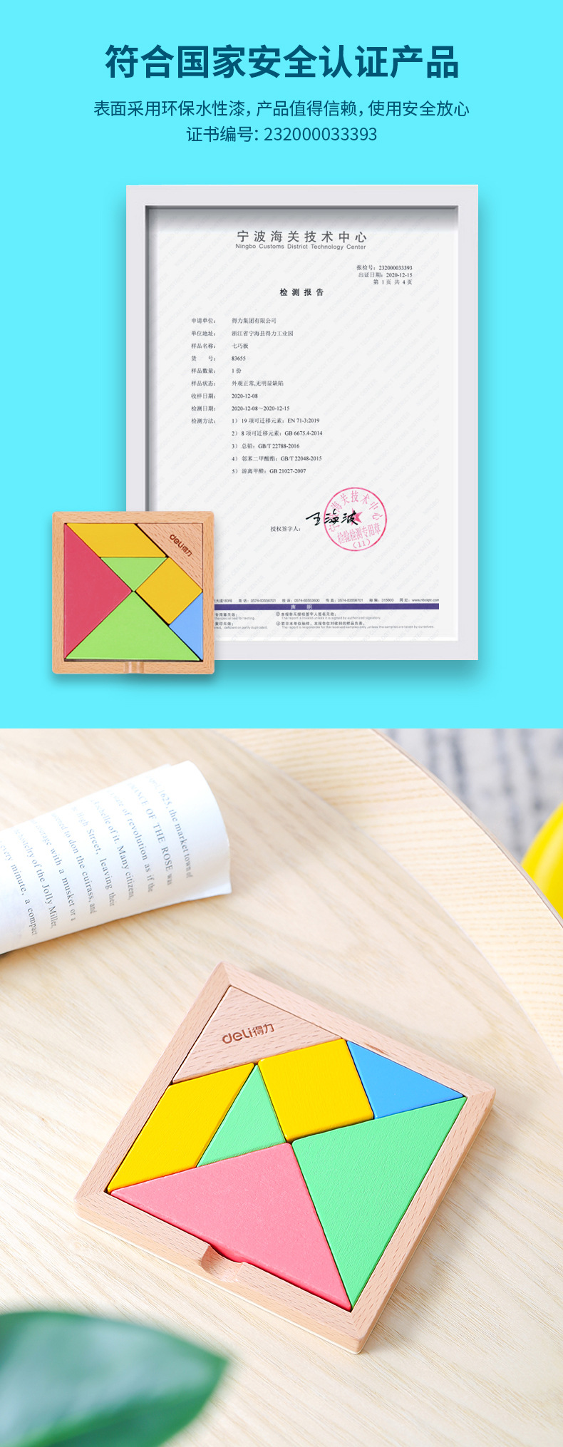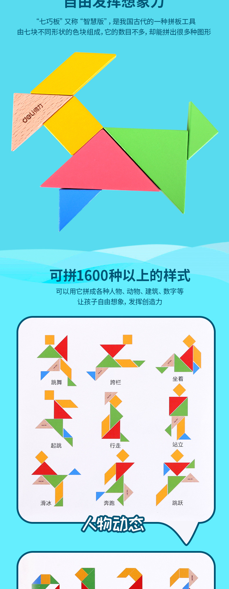 델리 83655 tangram 어린이 교육 장난감 나무 퍼즐 학생 창조적 인 입체 단단한 나무 교육 보조품 너도밤 나무스토어 가기