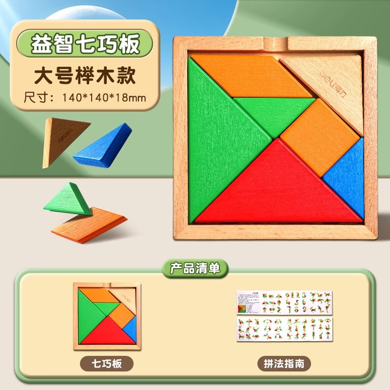델리 83655 tangram 어린이 교육 장난감 나무 퍼즐 학생 창조적 인 입체 단단한 나무 교육 보조품 너도밤 나무