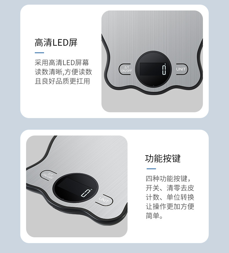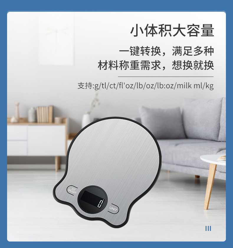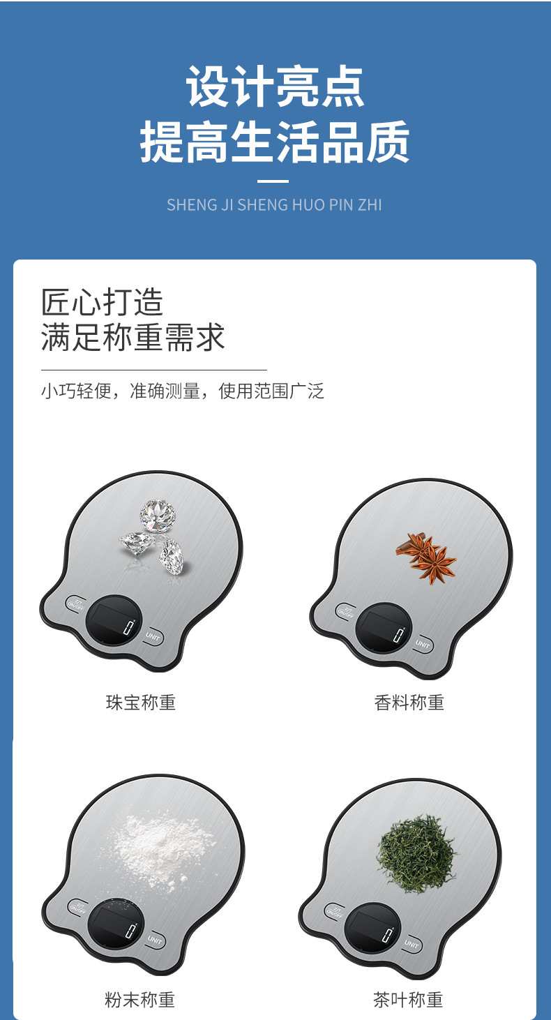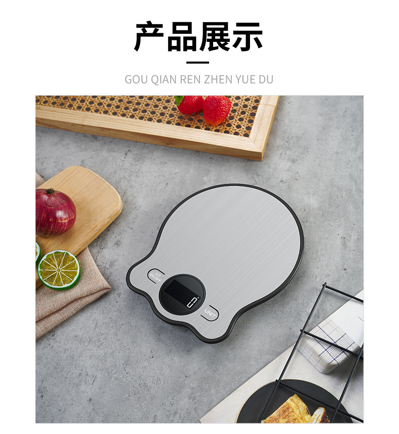 국경 간 주방 저울 스테인레스 스틸 새로운 베이킹 테이블 저울 USB 충전식 그램 저울 식품 과일 전자 저울 도매