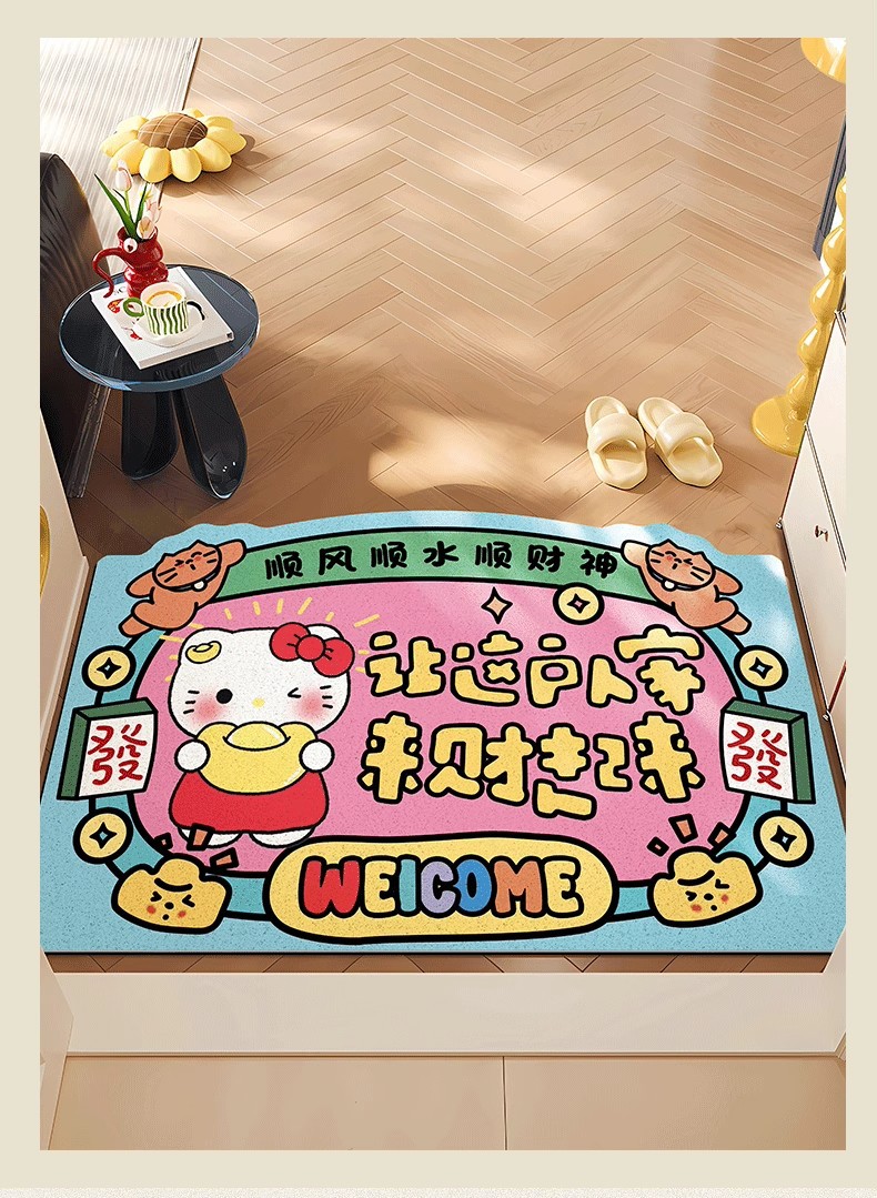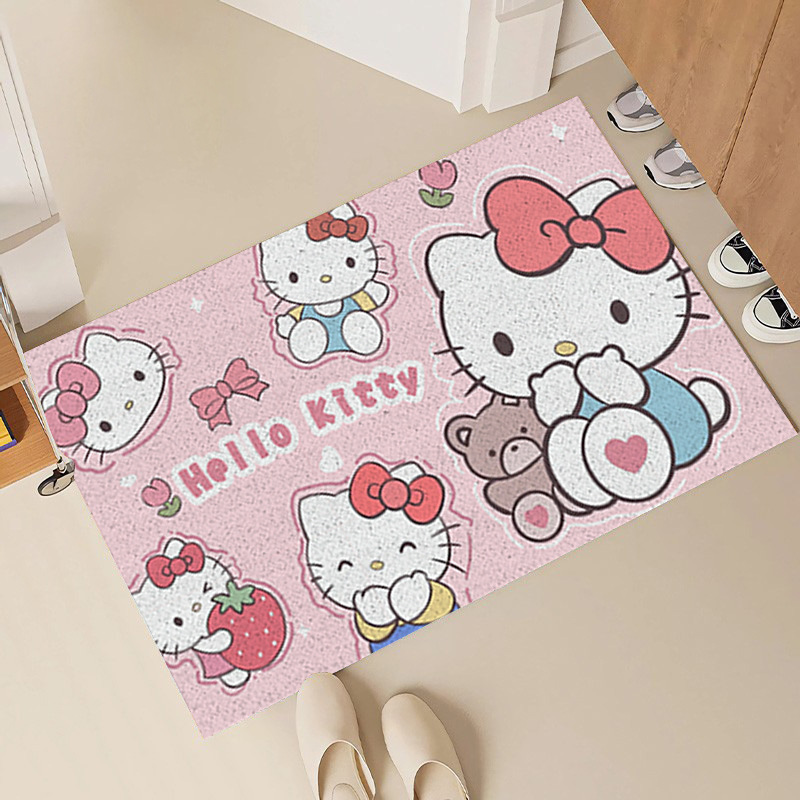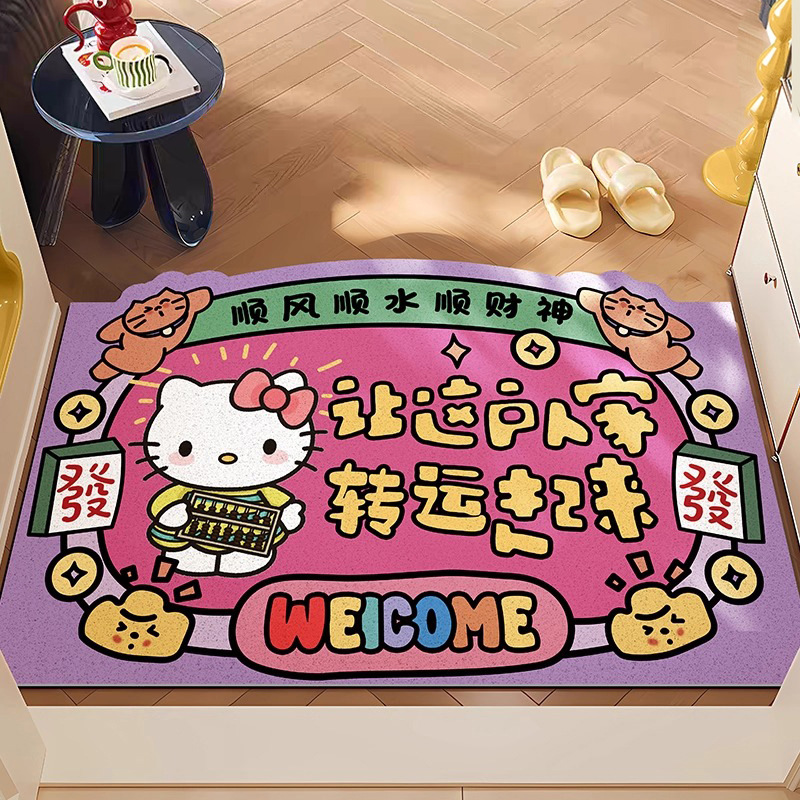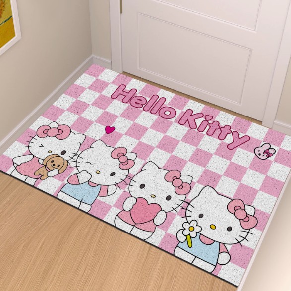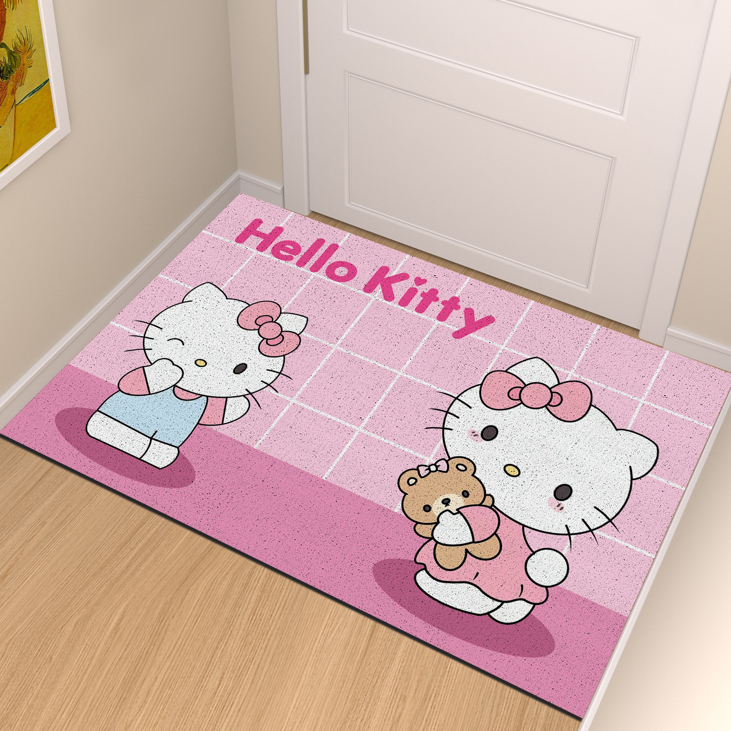 헬로키티 와이어링 홈 도어 매트, 관리가 쉽고 절단 가능한 PVC 미끄럼 방지 바닥 매트, 얼룩 방지, 내마모성 및 방진 바닥 매트스토어 가기