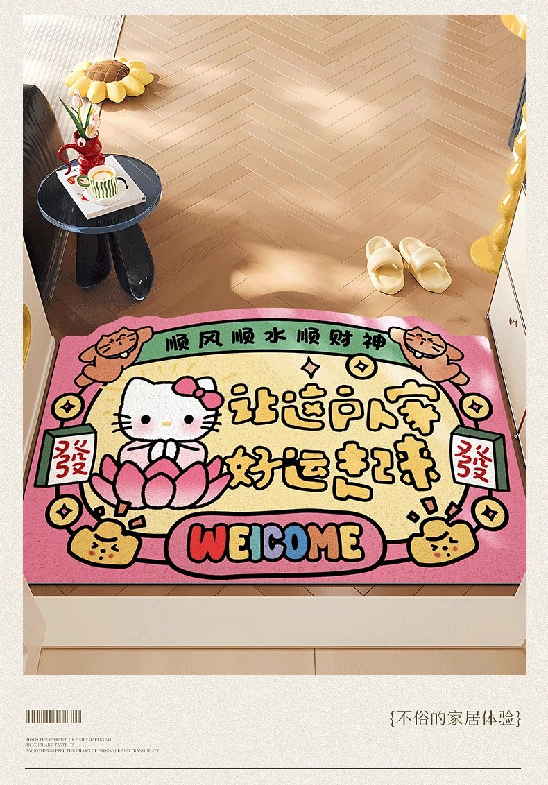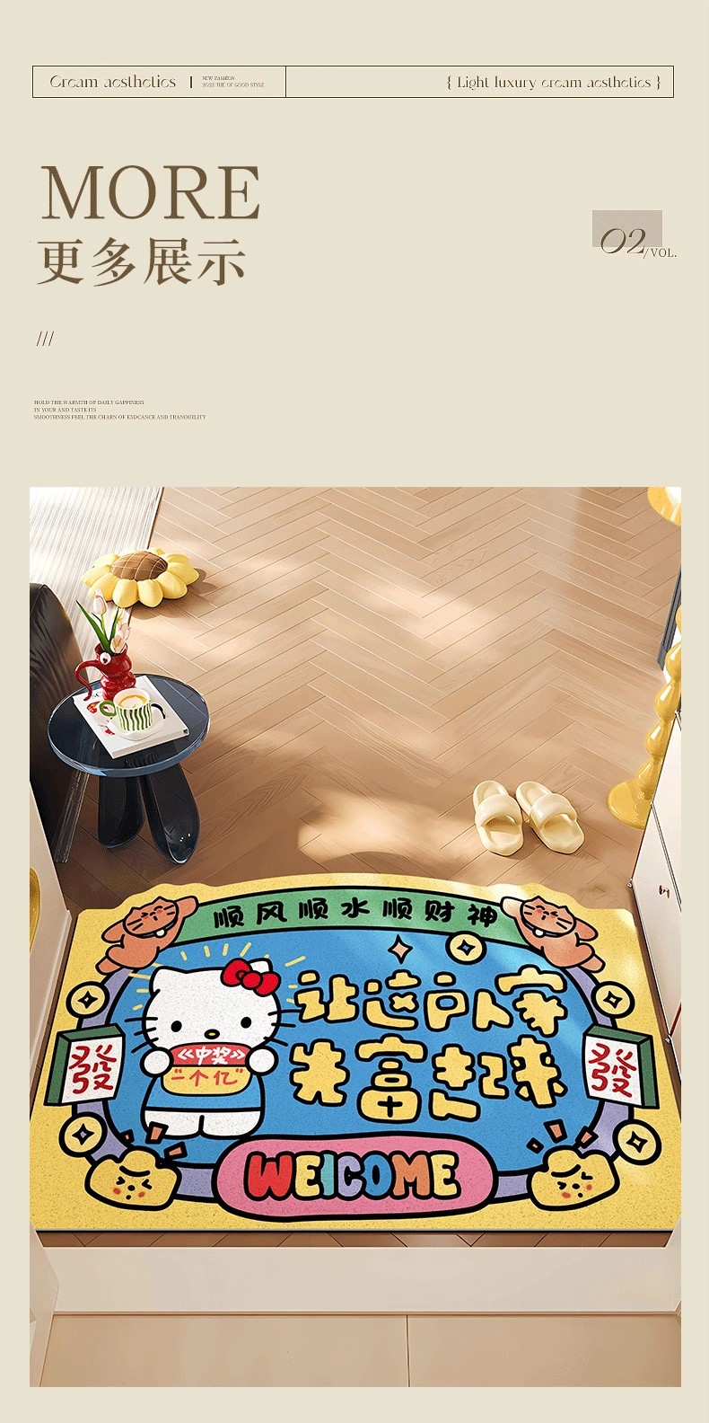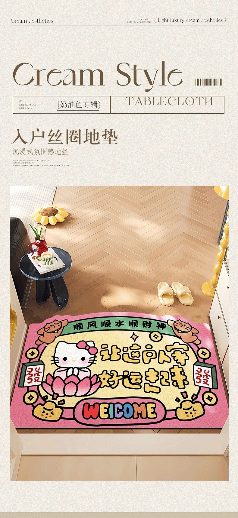 헬로키티 와이어링 홈 도어 매트, 관리가 쉽고 절단 가능한 PVC 미끄럼 방지 바닥 매트, 얼룩 방지, 내마모성 및 방진 바닥 매트스토어 가기