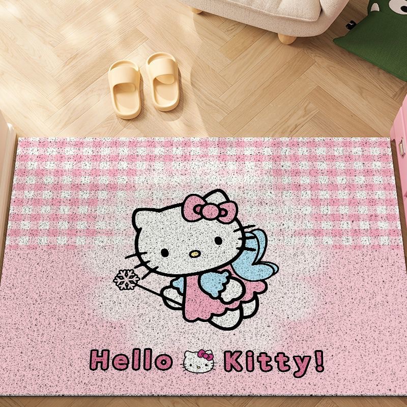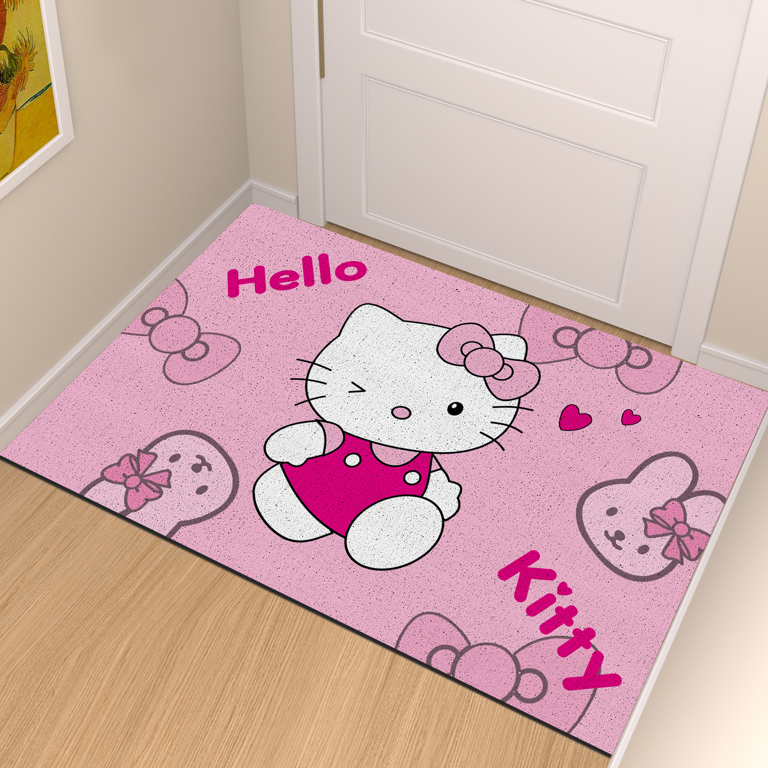 헬로키티 와이어링 홈 도어 매트, 관리가 쉽고 절단 가능한 PVC 미끄럼 방지 바닥 매트, 얼룩 방지, 내마모성 및 방진 바닥 매트