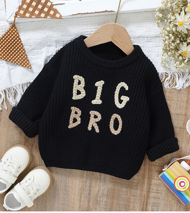 뜨거운 새로운 아기 유아 니트 글꼴 자수 라운드 넥 탑 스웨터스토어 가기