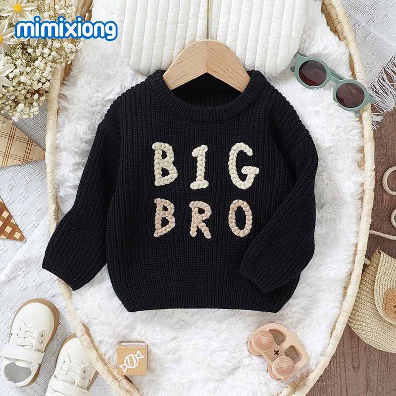 뜨거운 새로운 아기 유아 니트 글꼴 자수 라운드 넥 탑 스웨터