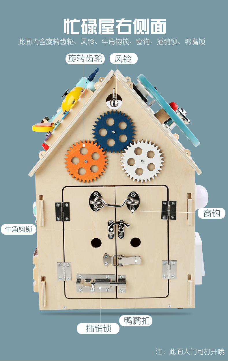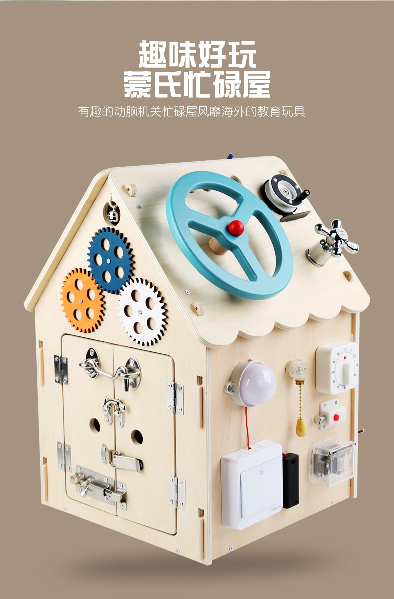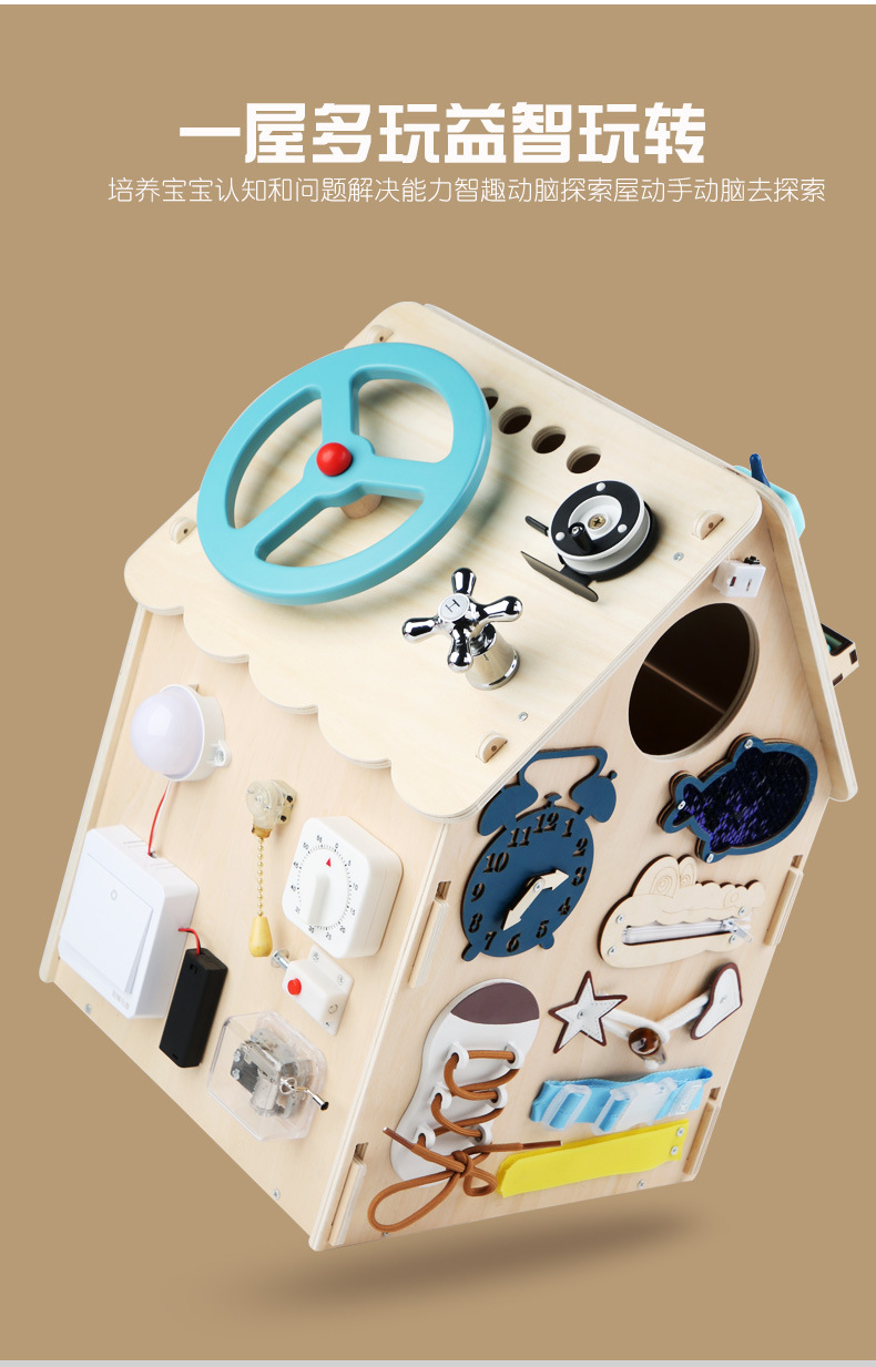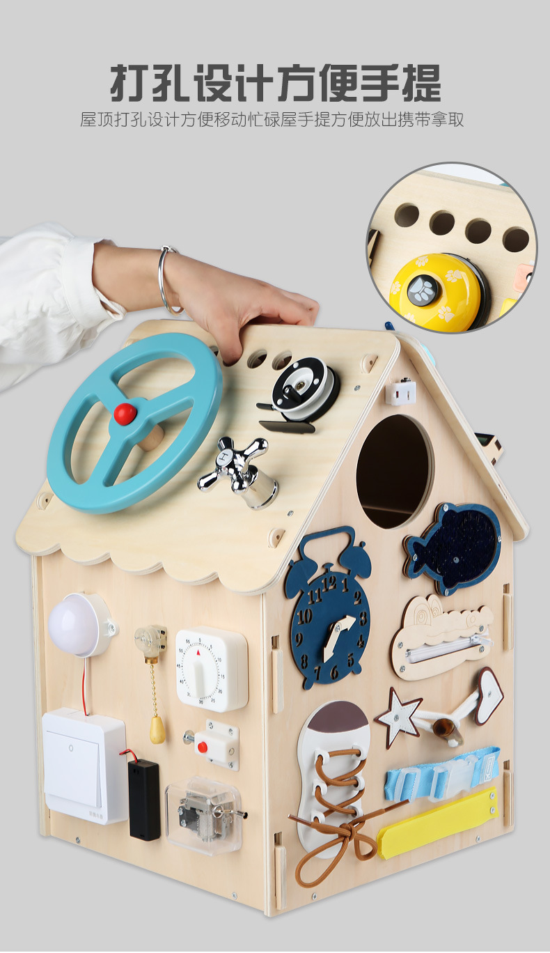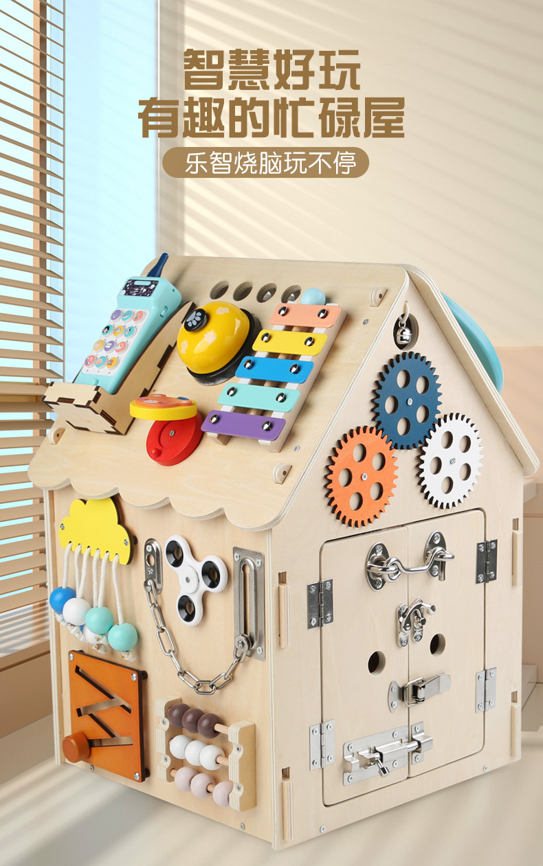 제조 업체 도매 나무 몬테소리 교육 보조 바쁜 집 아기 조기 교육 집중력 훈련 메커니즘 잠금 해제 장난감스토어 가기